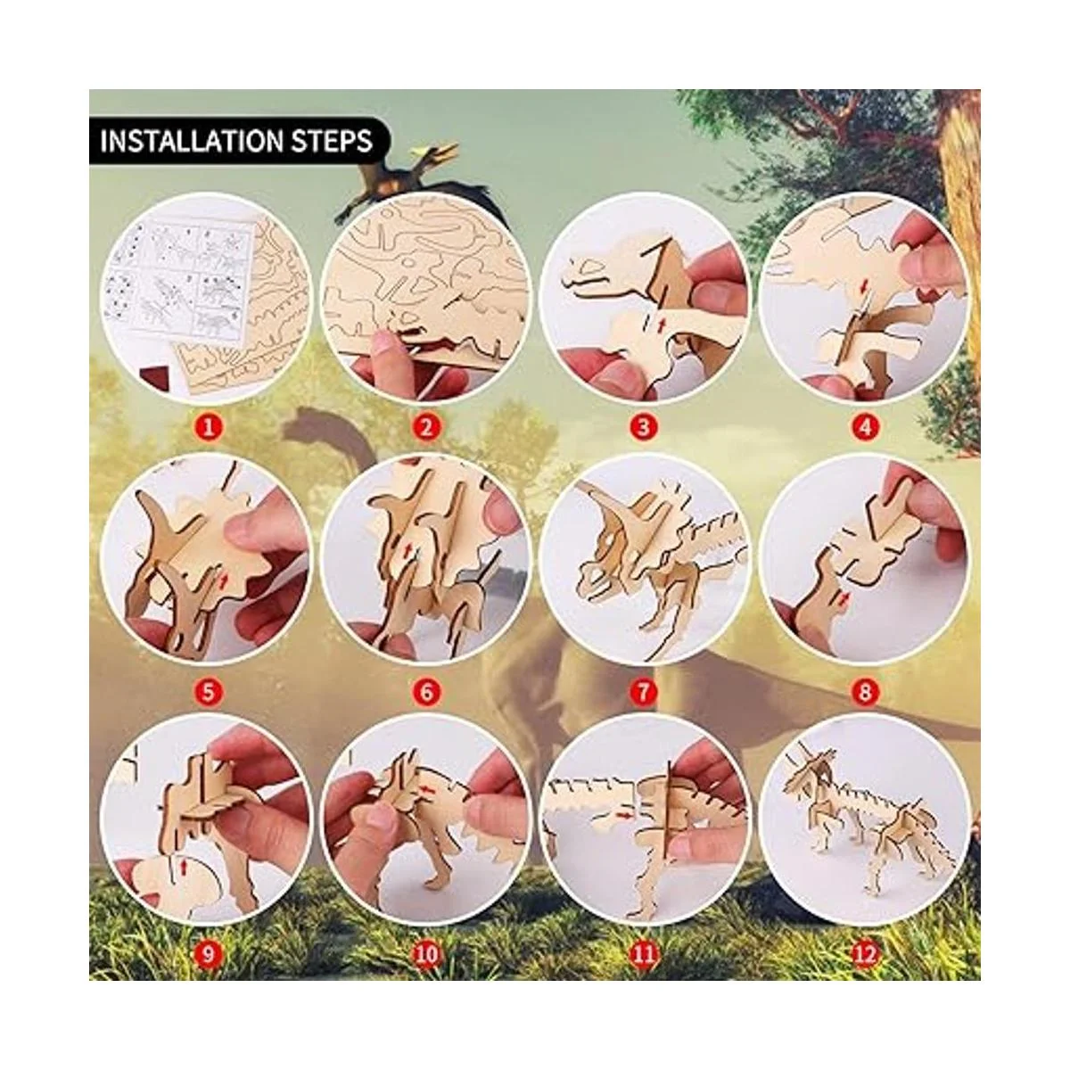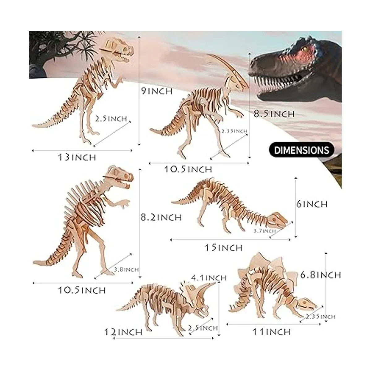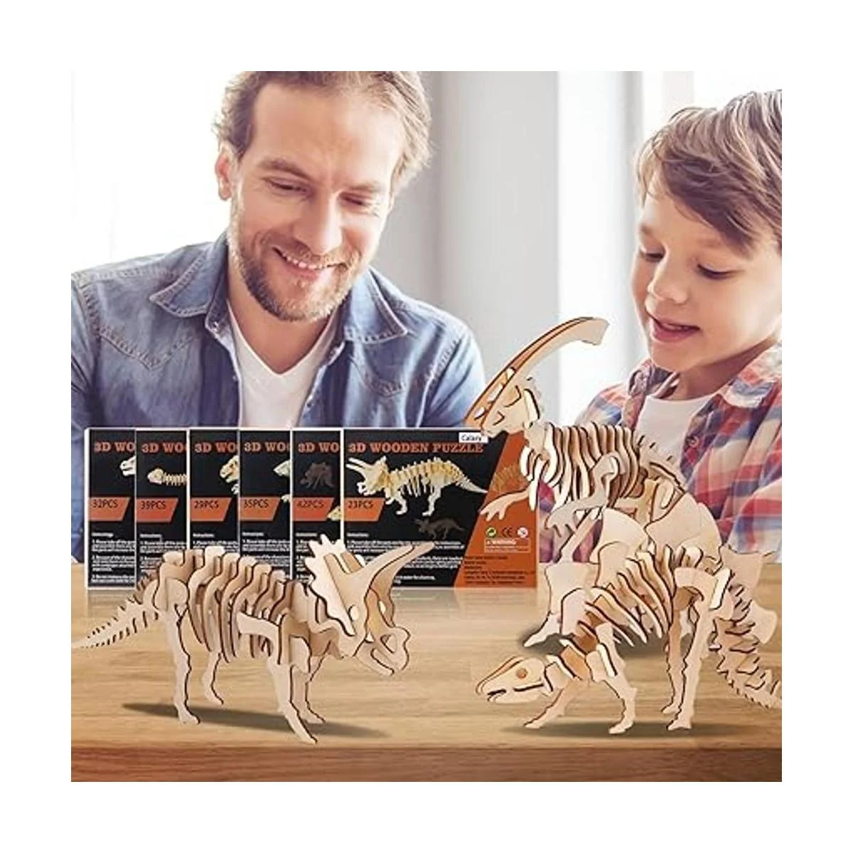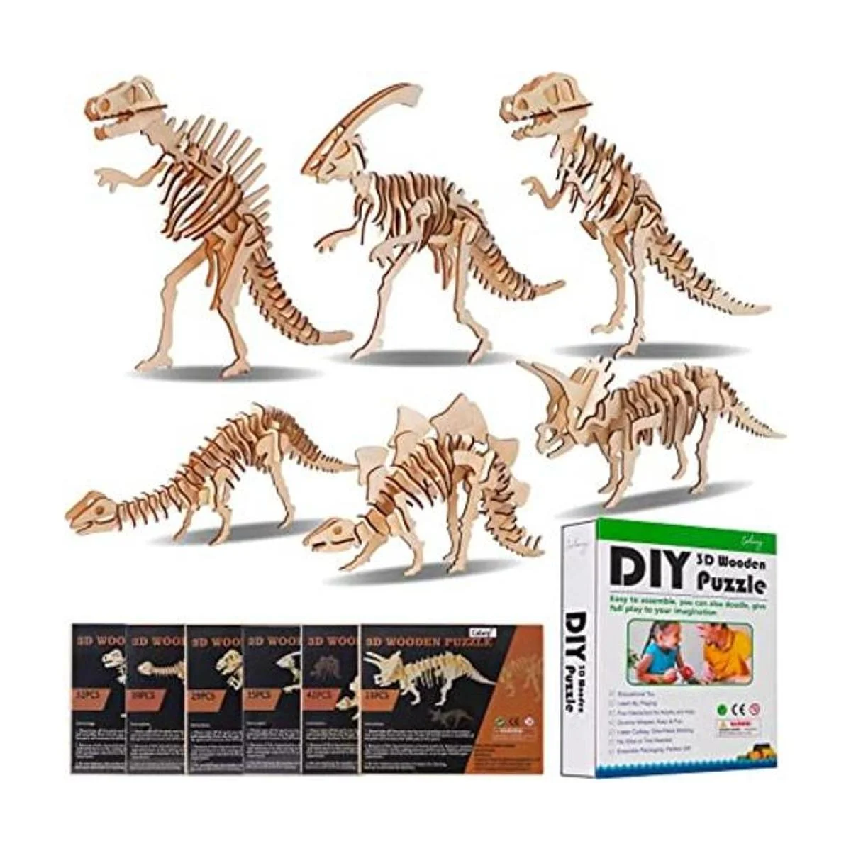 calary Rompecabezas de madera 3D de simulación de dinosaurios de animales, juguete de bricolaje para niños y adultos, juego de 6