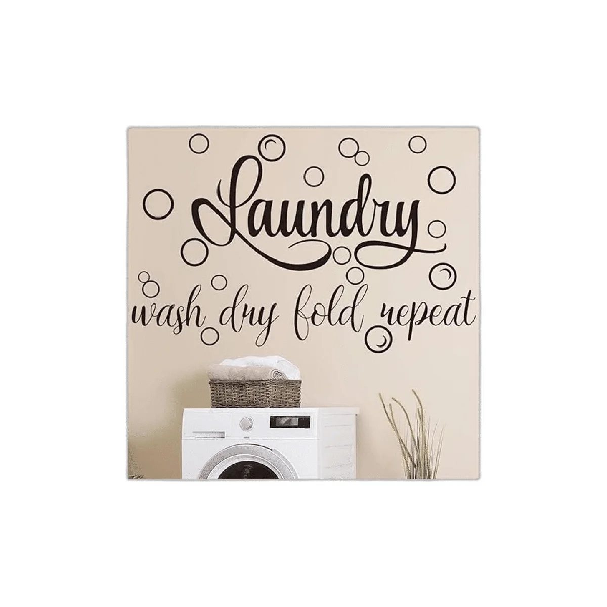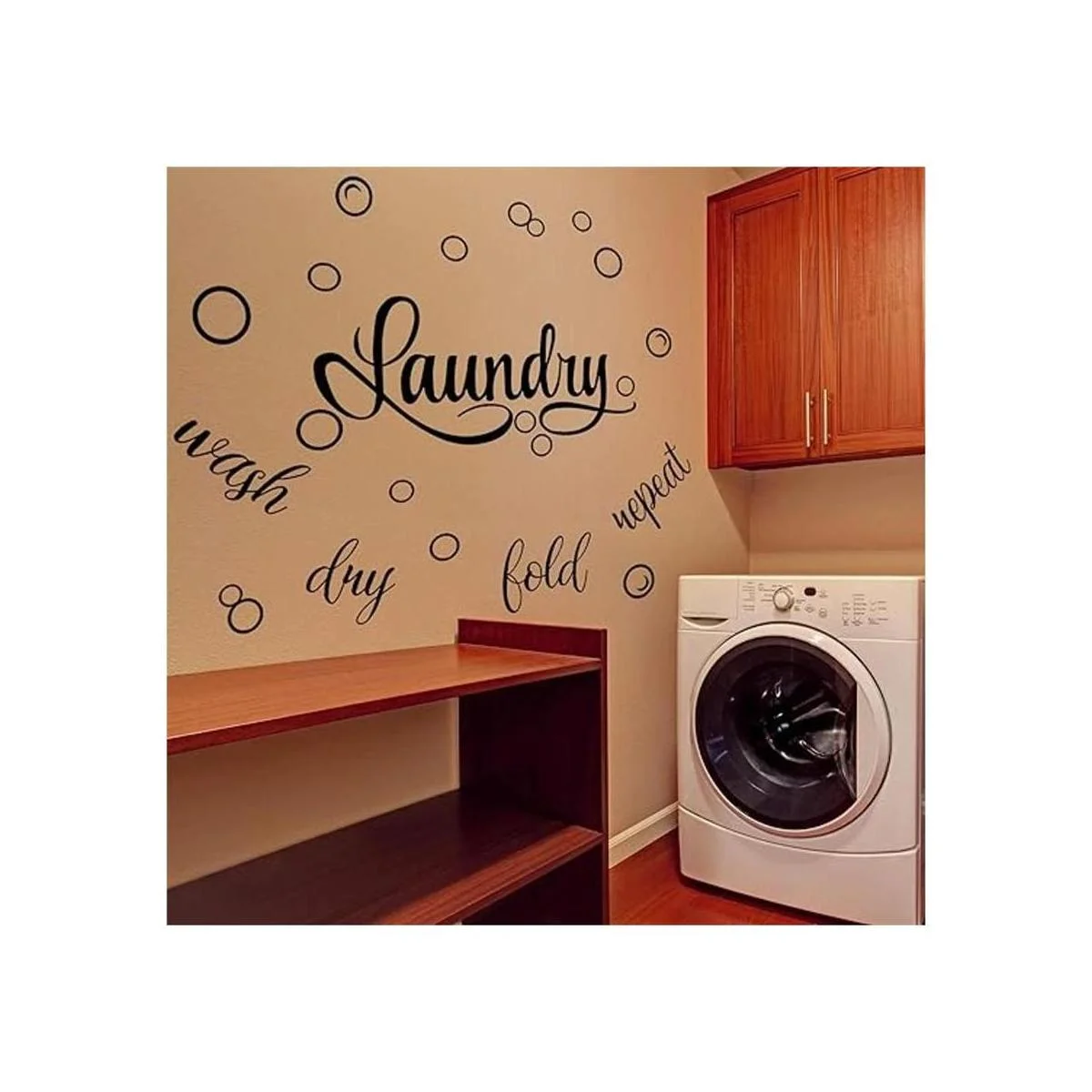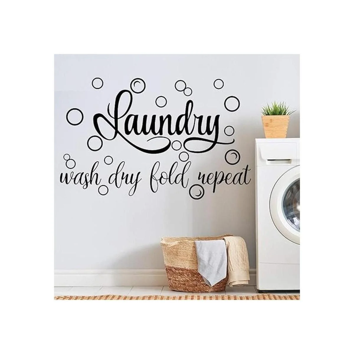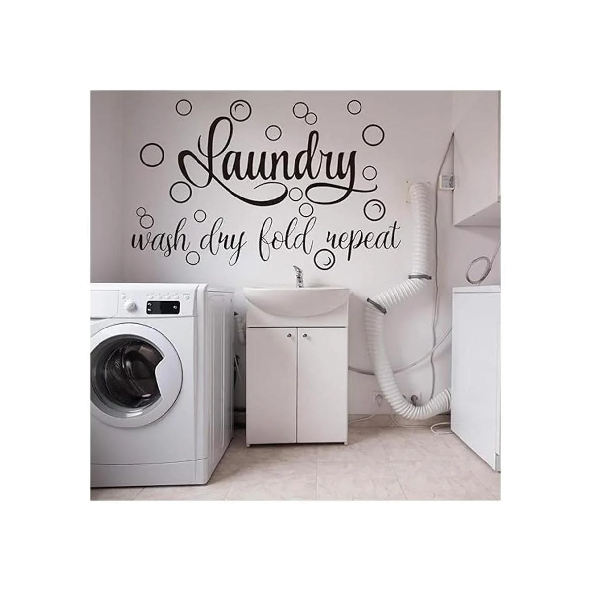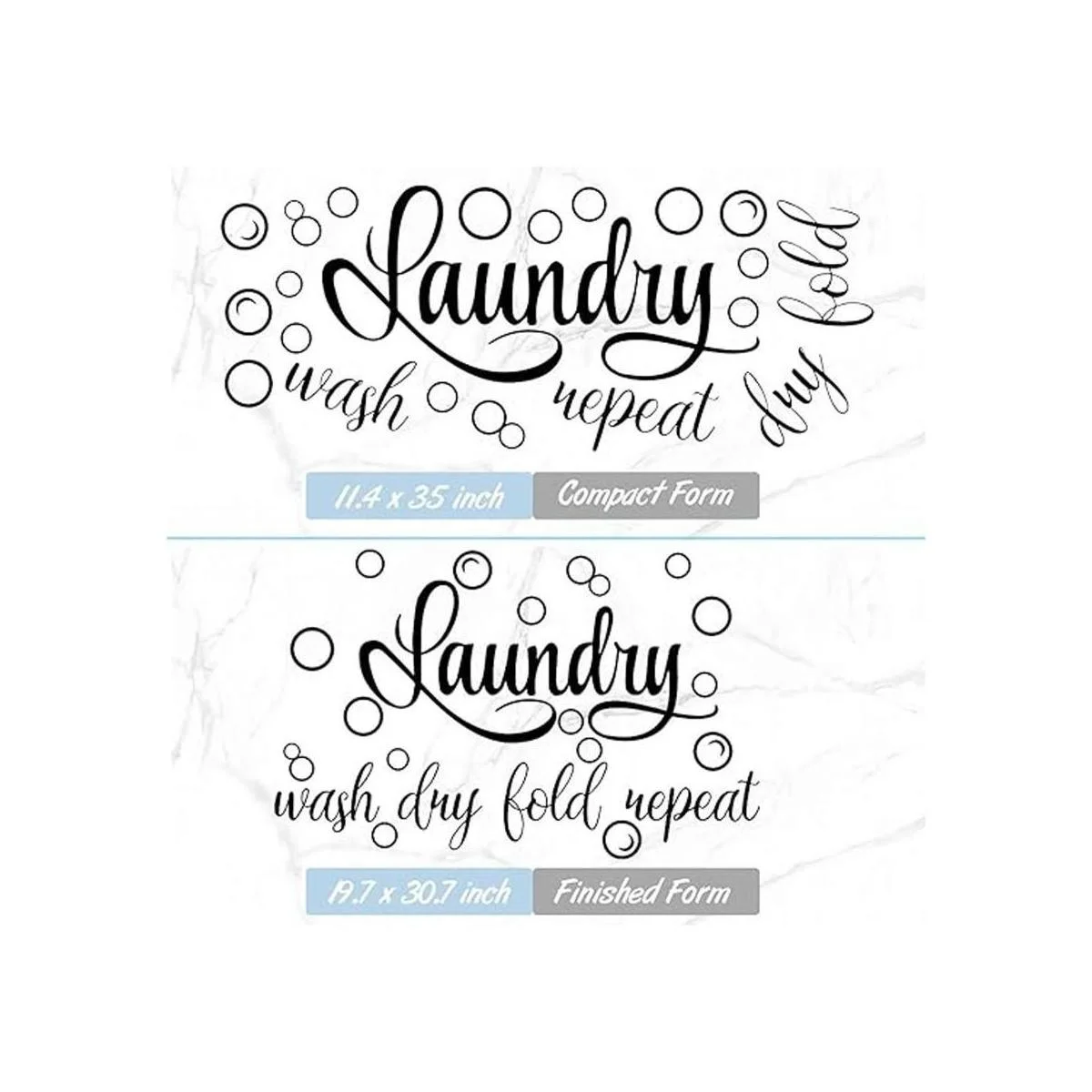 Calcomanía de pared de vinilo para sala de lavandería, con texto en inglés lavar, plegado y repetitivo, con burbujas, calcomanías de arte de lavandería, calcomanías para citas de pared, para suministros de decoración 19.7 x 30.7 pulgadas, negro