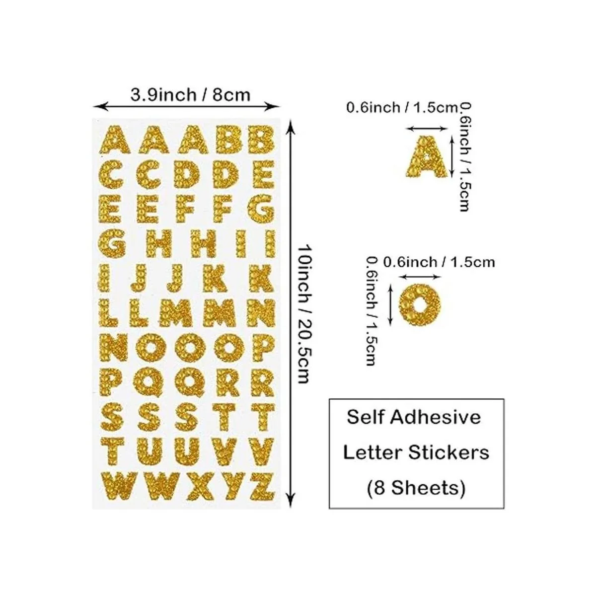 Calcomanías autoadhesivas del alfabeto con purpurina, 8 hojas de diamantes de imitación de cristal con purpurina para letras del alfabeto, letras de la A a la Z, para gorra de graduación y arte artesanal, 8 colores