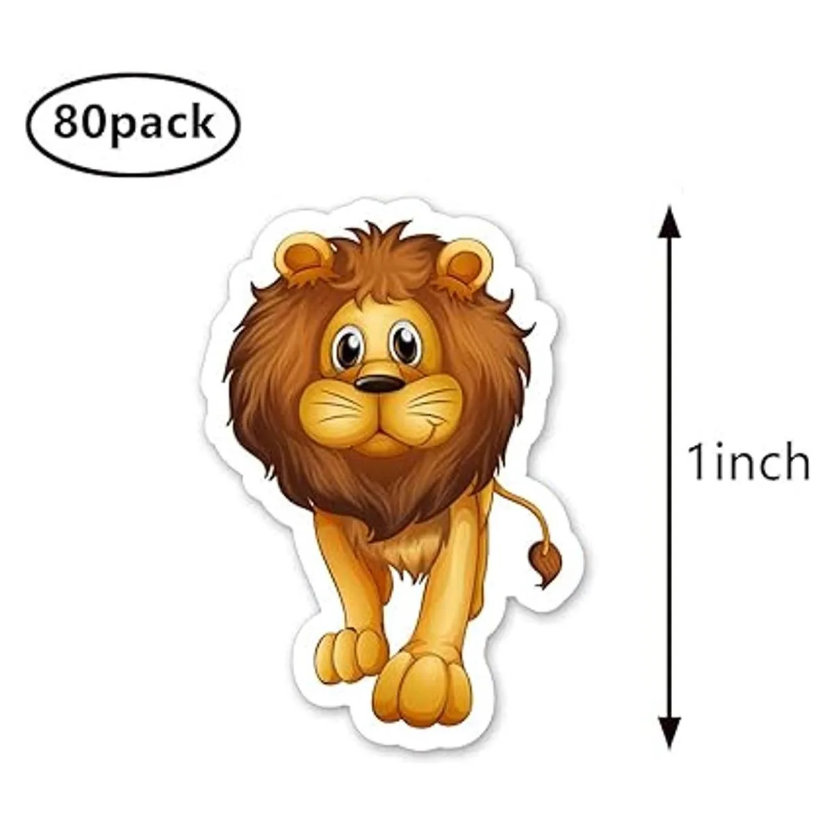 Calcomanías de animales del zoológico del león de 1 pulgada para álbumes de recortes, manualidades, bricolaje para niños, calendarios y diarios, paquete de 80
