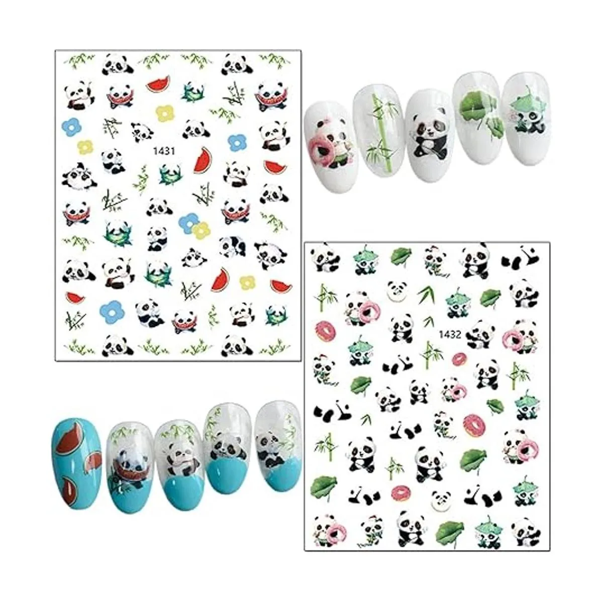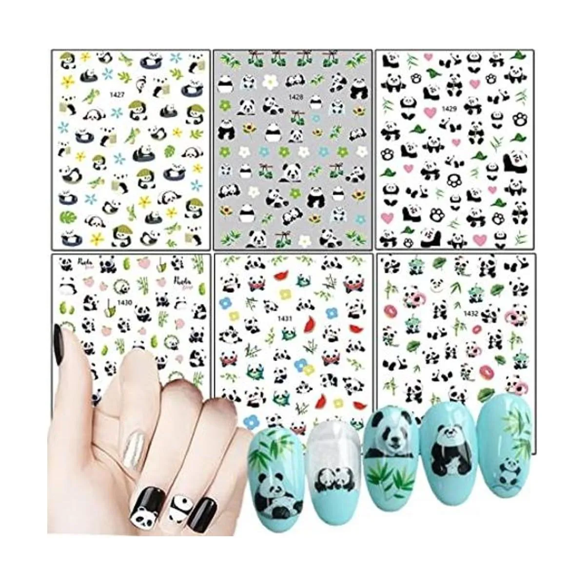 Cantidad: recibirás 6 hojas de calcomanías adhesivas de panda lindas, cada papel mide 4.1 x 3.1 in. Una variedad de bonitos patrones de oso de dibujos animados, estas calcomanías de uñas son perfectas para combinar con otros diseños de uñas.