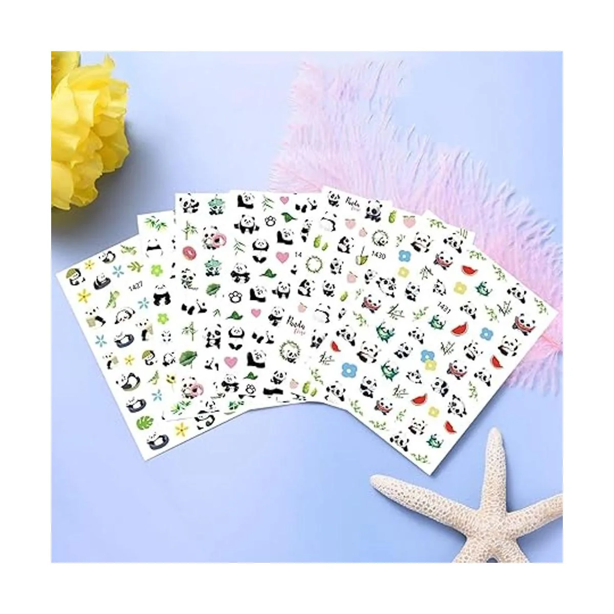 Calcomanías de arte de uñas panda, diseño de oso de dibujos animados, autoadhesivas, holográficas, lindas flores, hojas, suministros para mujeres y niñas, decoración de animales, resina para transferencia de mascotas