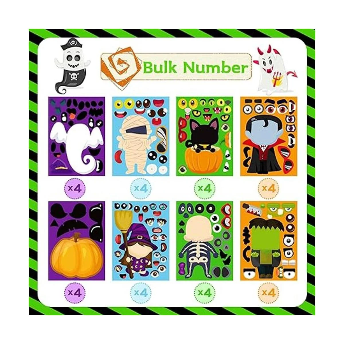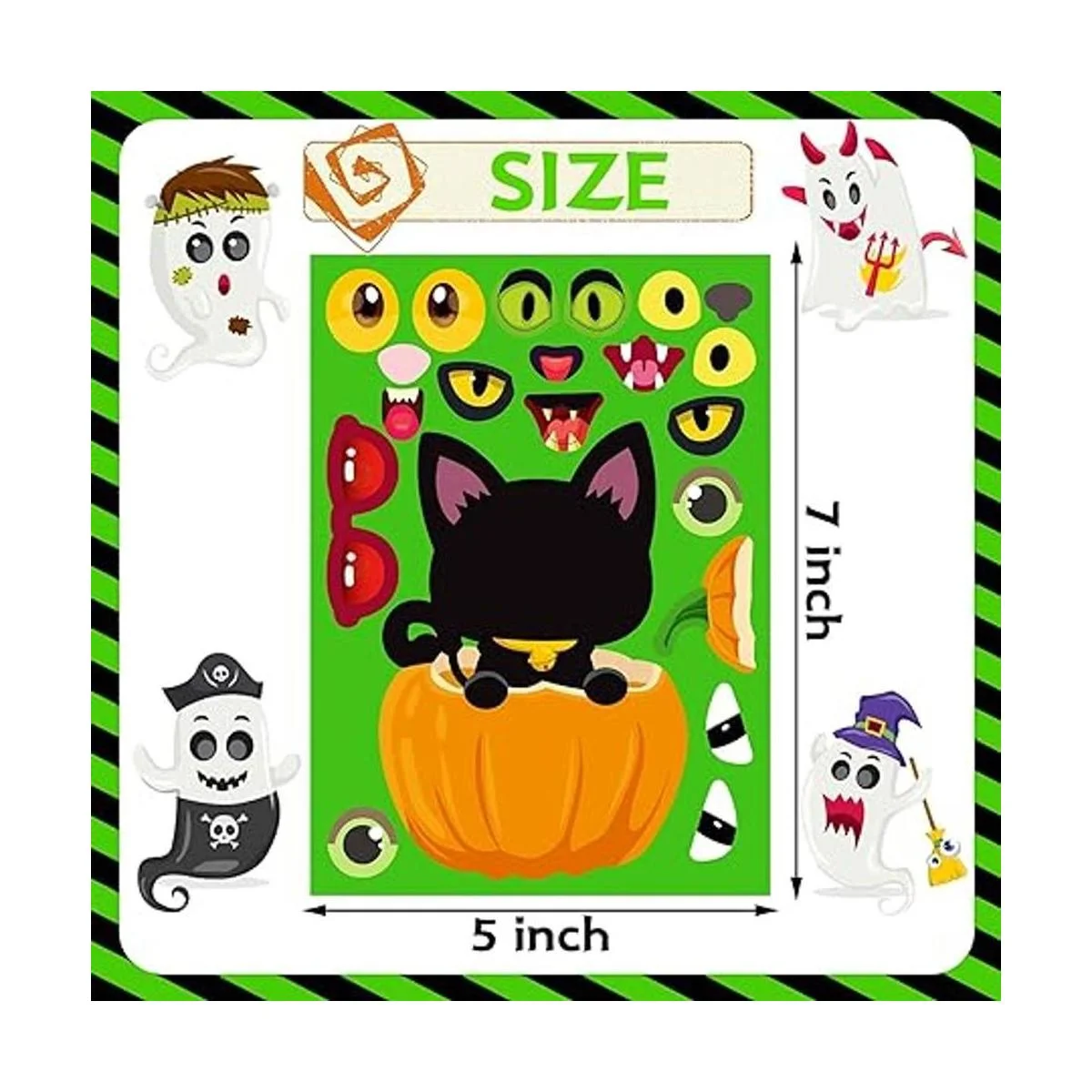 32 piezas de múltiples estilos : hay 8 estilos en el Halloween para hacer calcomanías faciales, puedes dejar que tus hijos creen sus propios personajes de Halloween, zombi, vampiro, bruja, fantasma, gato, calabaza, gato, esqueleto. Muchos estilos y cada patrón tiene 4 hojas de calcomanías de Halloween, y cada hoja mide 7 x 5 pulgadas. Al mismo tiempo, estas calcomanías de Halloween para niños son lo suficientemente grandes como para usar que otras pegatinas.