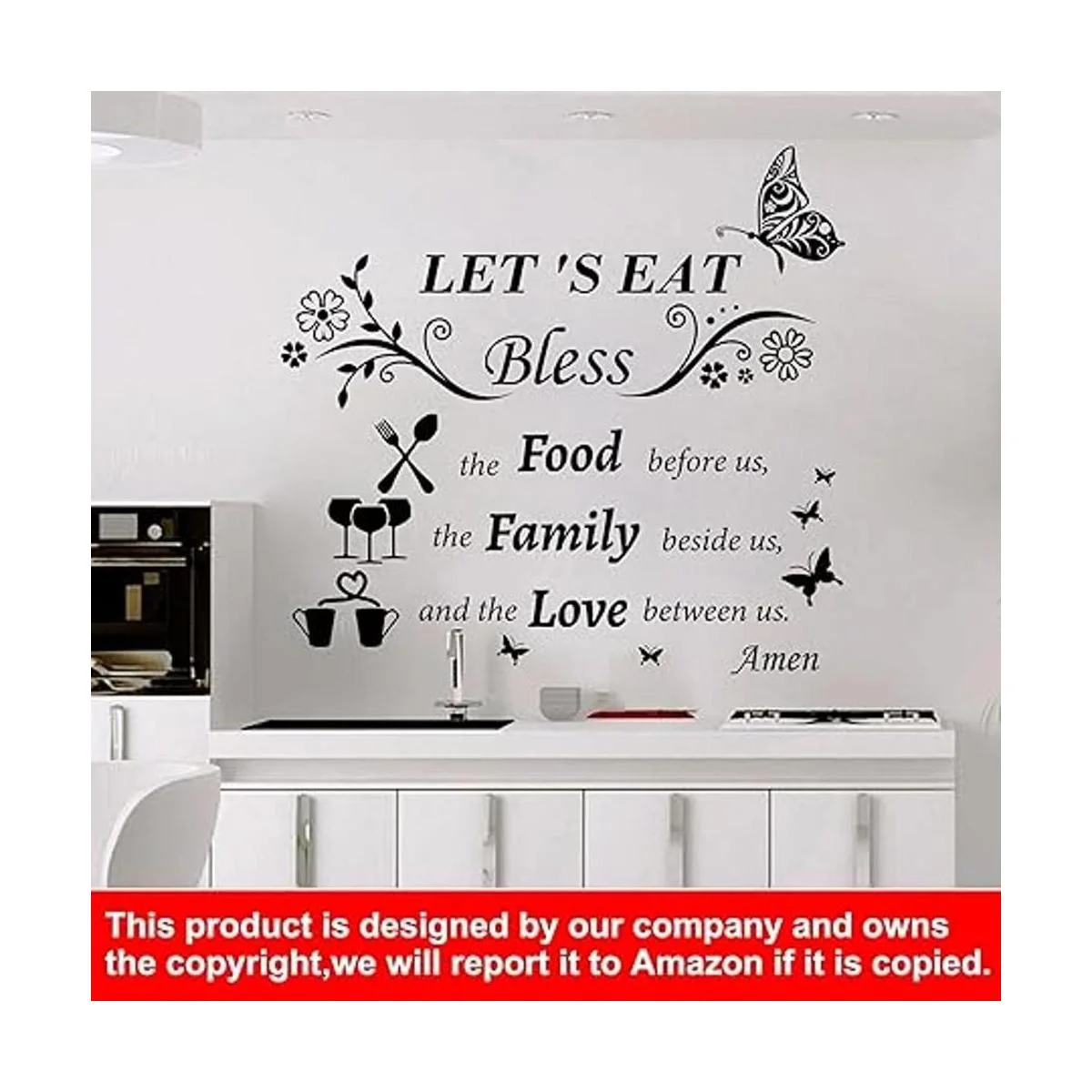 Calcomanías de pared de cocina, cena, comida, oración, calcomanías de pared de vinilo, citas de cocina, calcomanías de pared Lets Eat Bless The Food Before Us Firmar cristiano religioso dicho para comedor, hogar, restaurante
