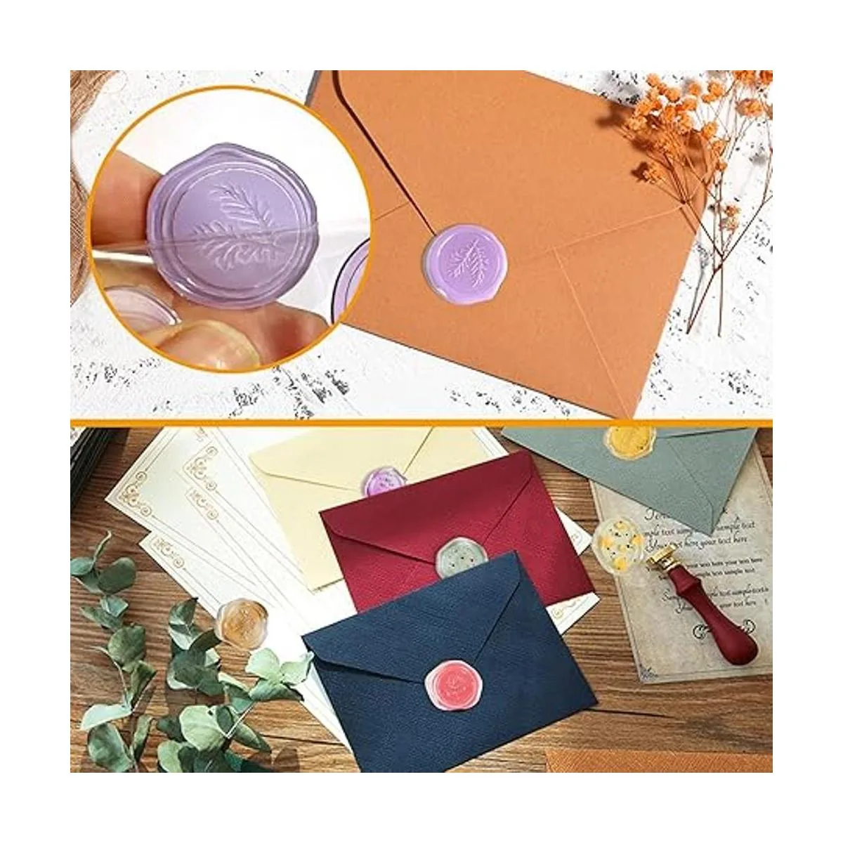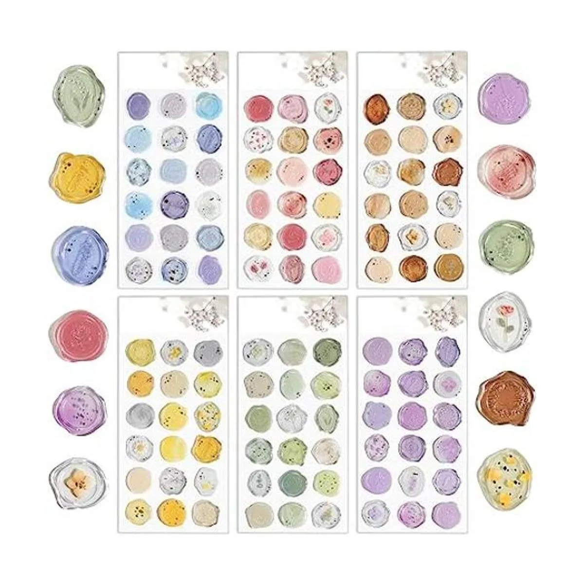 Calidad prémium: las elegantes calcomanías de sellado de cera están hechas de resina de cristal de alta calidad y material de PVC, fuerte adhesivo que hace que sea duradero y resistente, se adhiere muy bien para una variedad de sellado de sobres.