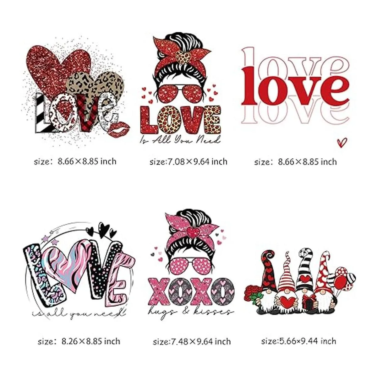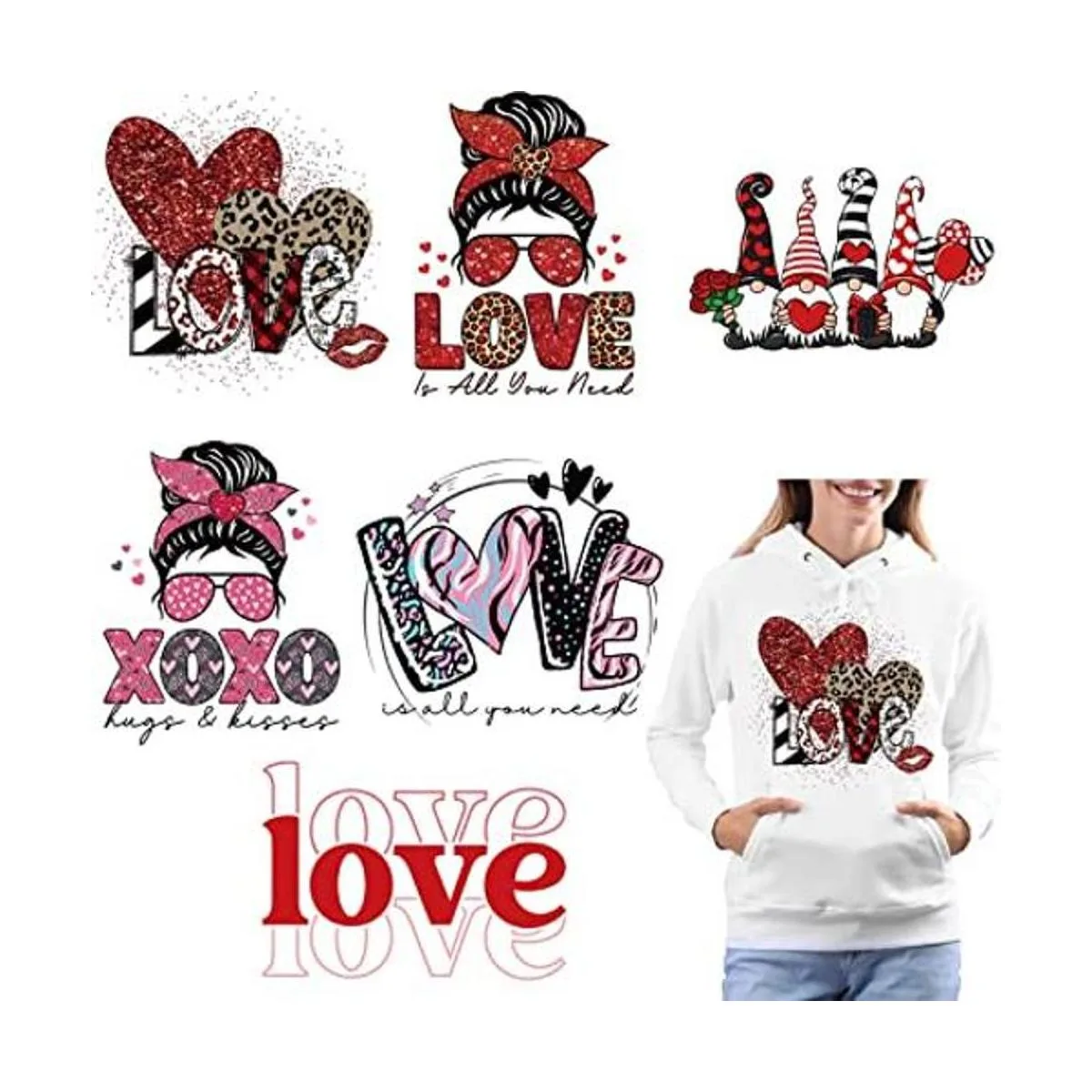El paquete incluye: recibirás 6 hojas de calcomanías de transferencia de calor para el día de San Valentín con un patrón de diseño de corazón de amor, puedes combinarlas para pintar en ropa, fundas de almohada y mochilas como quieras, y estos elementos de parche pueden añadir un fuerte ambiente del día de San Valentín.