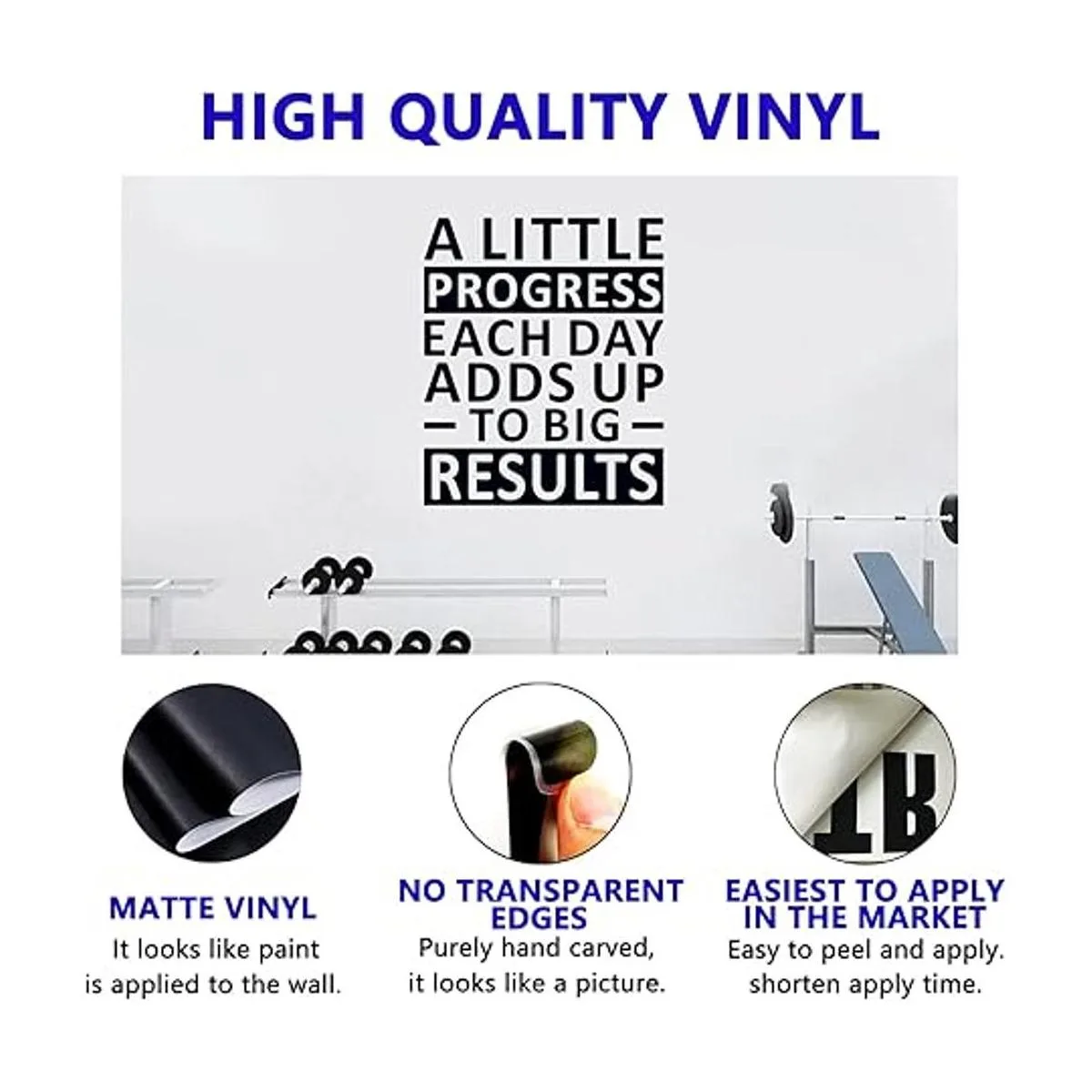 Calcomanías motivadoras de pared, calcomanías de pared para gimnasio, fácil de instalar, citas de decoración de pared, fitness, deportes, entrenamiento, correr, ejercicio inspirador, trabajo en equipo, oficina, garaje, escuela, dormitorio, mujeres y hombres, póster positivo para refranes familiares, arte de vinilo decorativo para el hogar, un poco de progreso cada día, 20 x 24 pulgadas