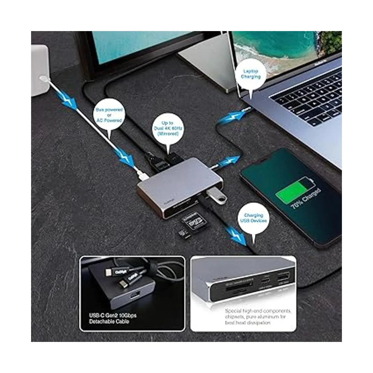 8 puertos de conectividad 2 x USBC 10 Gb/s Host/Datos, 1 x USBC carga de paso, 1 x USBA 10 Gb/s, 1 x DisplayPort 1.4, 1 x HDMI 2.0b, 1 x UHS II SD, 1 x UHS II microSD Compatible con Mac y Windows USBC o Thunderbolt 3 puerto compatible con DP 1 .4 requerido para una salida completa de 4K 60Hz