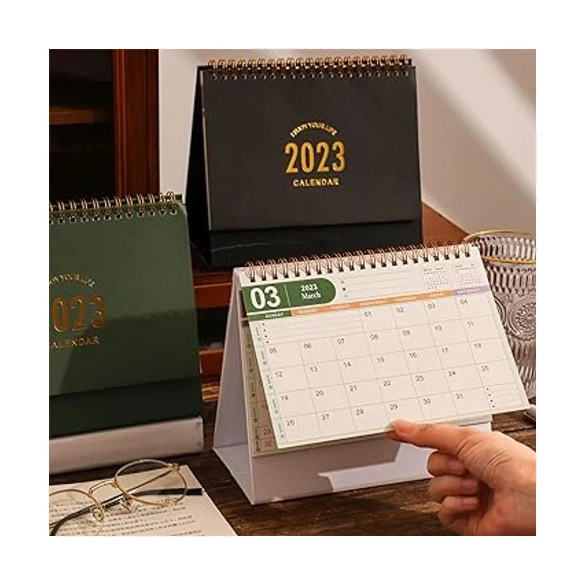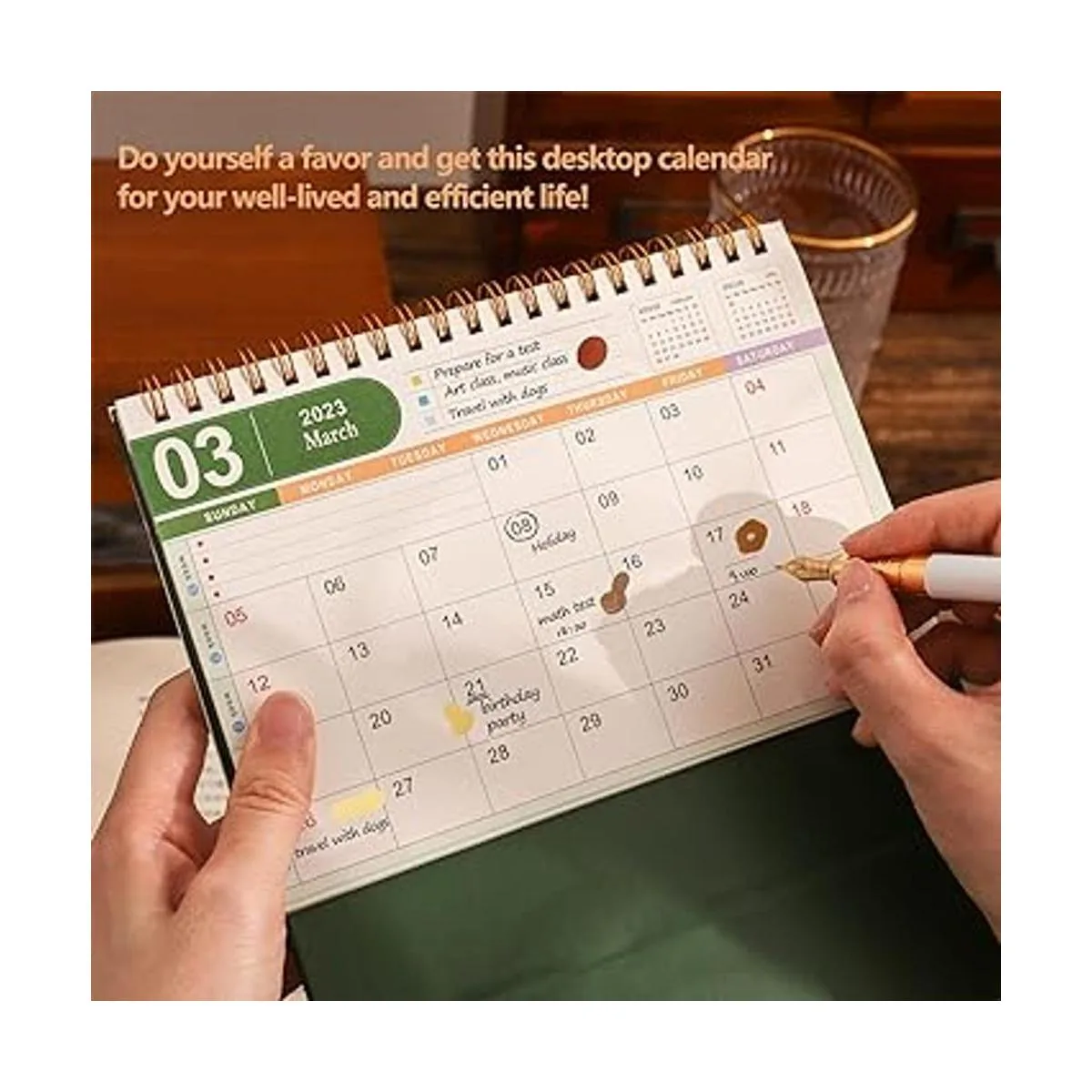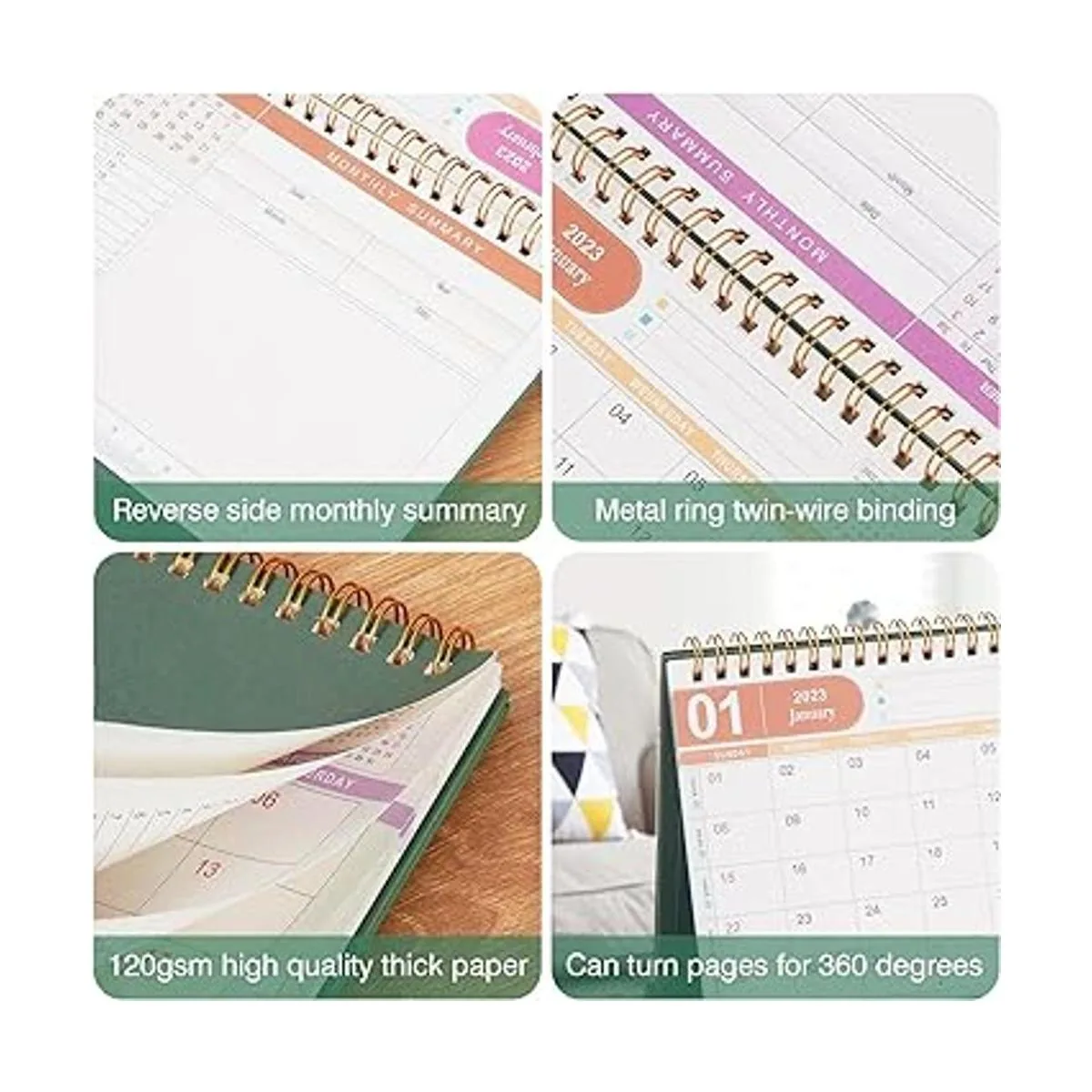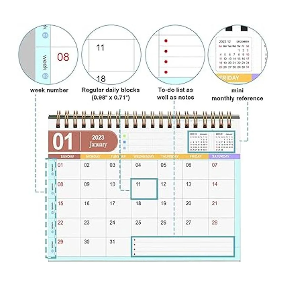 Calendario de escritorio de pie: este calendario de escritorio 2023 es una herramienta perfecta para ayudar a tu vida más productiva, está apoyado por un tablero grueso para que sea un calendario de escritorio de pie, encuadernación doble en espiral duradera para facilitar la vuelta de la página, puedes girar el mes pasado a un nuevo mes en lugar de rasgarlo.