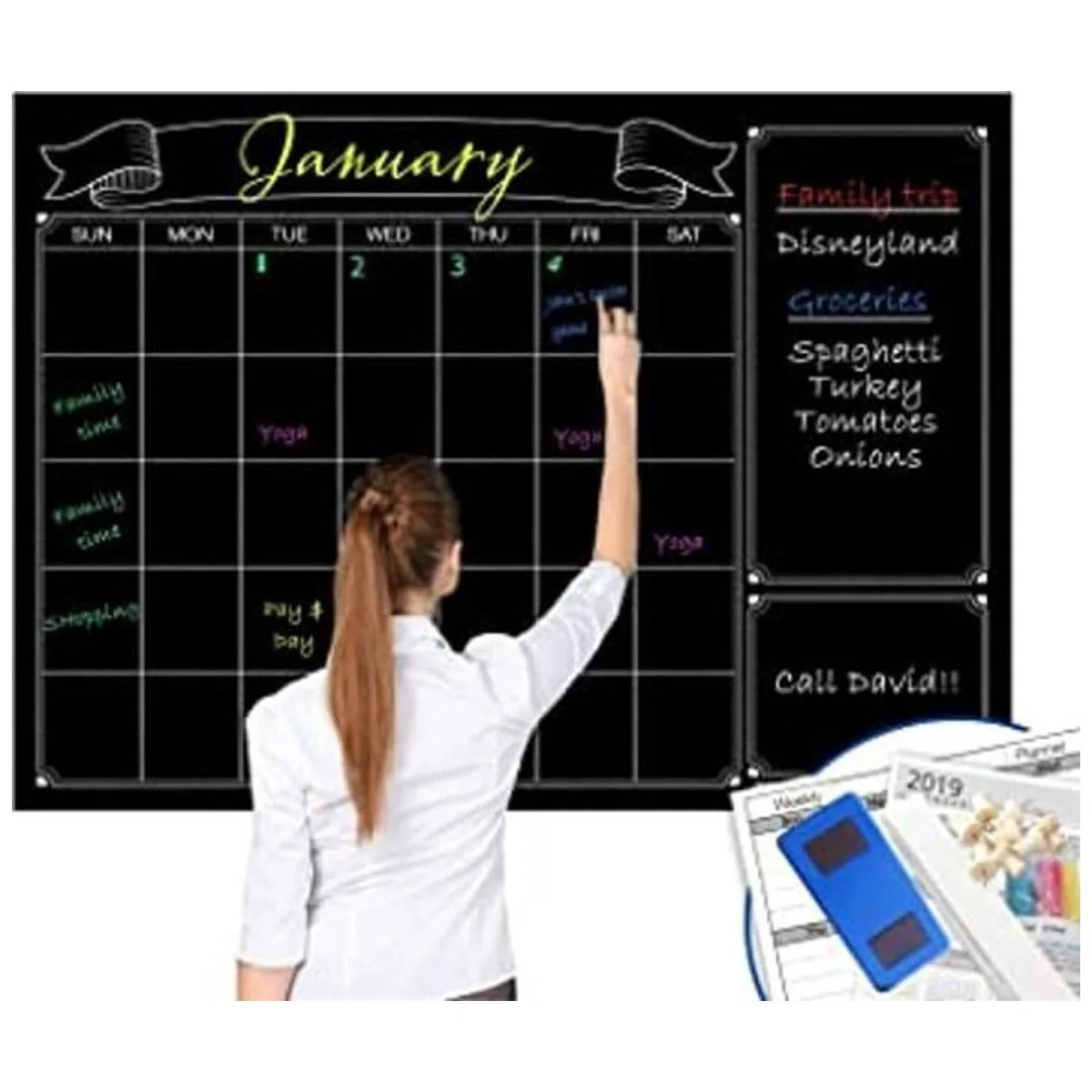 Calendario de pared de pizarra grande laminado negro de borrado en seco, 38 x 50 pulgadas, tablero de anuncios semanal enorme de pizarra borrable, adhesivo de decoración de pared
