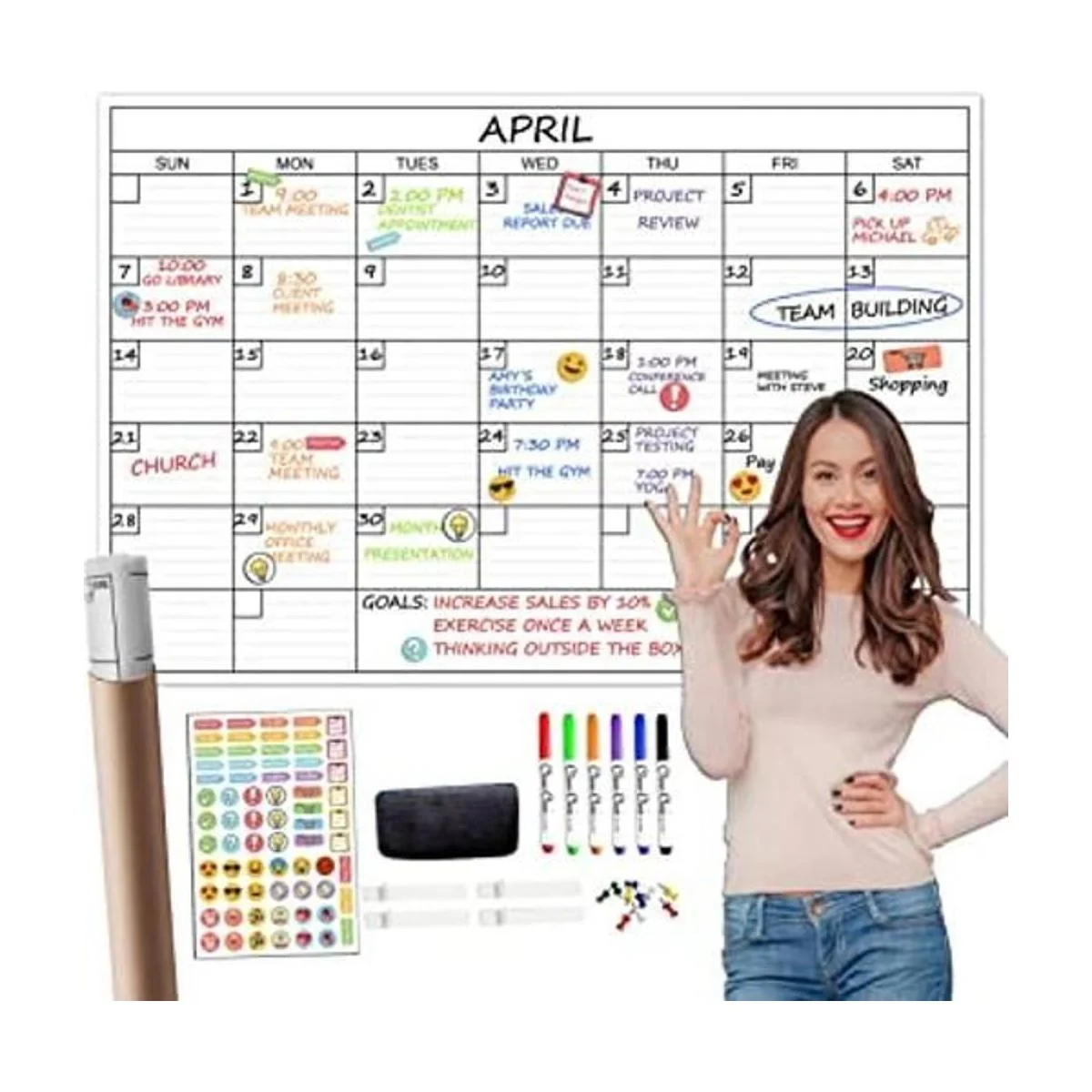 Calendario extragrande de pared de borrado en seco, planificador sin fecha para el hogar, la oficina, la escuela, organizador de tareas laminado reutilizable