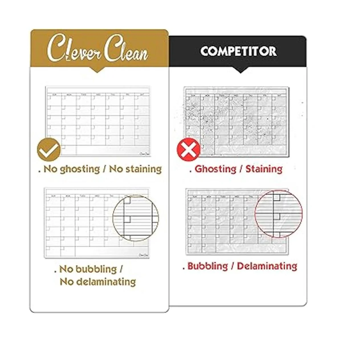 Nueva tecnología, nueva experiencia: la experiencia del cliente es muy importante para nosotros, por lo que utilizamos la película de borrado nano premium en nuestros productos. En comparación con la antigua película PET, el nano material hará que tus escritos sean muy fáciles de limpiar incluso después de dejar los escritos en el planificador durante mucho tiempo. Y no deja manchas ni fantasmas. La nano película también es resistente al agua, por lo que si quieres limpiar el calendario de borrado en seco con un paño húmedo, esto es tu manera. Simplemente hazlo.
