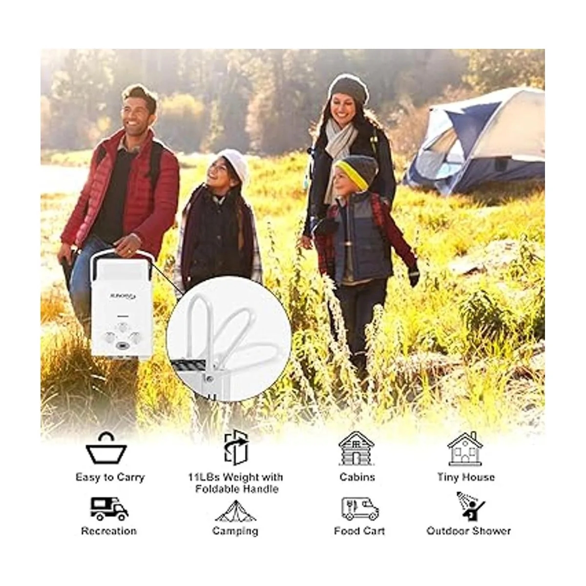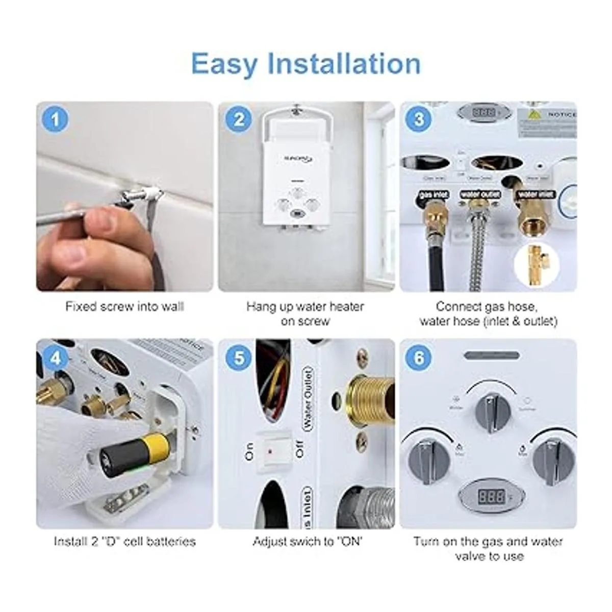 Diseño ligero y portátil: tamaño compacto y diseño ligero para un fácil transporte. Puede traer una increíble ducha caliente para ti cuando estás de camping, a la playa, etc. También puedes lavar a tus mascotas con este calentador de agua sin tanque en exteriores. Utiliza el mango del calentador de agua de gas o el soporte de montaje en la parte posterior para colgarlo. Solo tarda unos minutos en instalarlo.