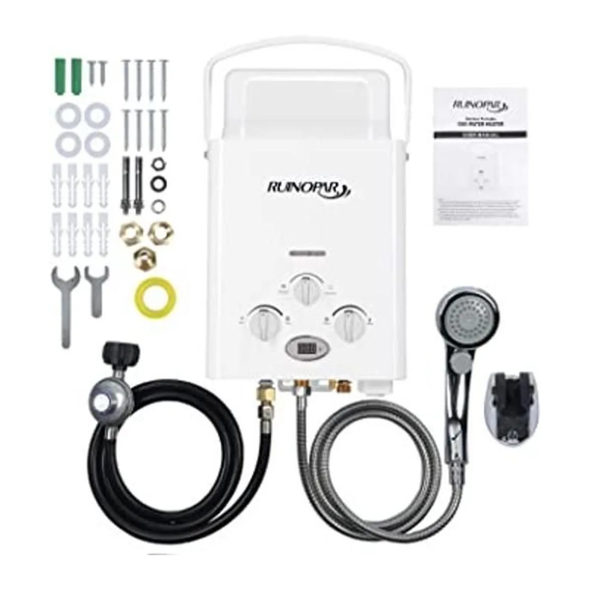 Calentador de agua portátil de propano sin depósito, 6 L 1.58 GPM RV bajo demanda Calentador de agua digital para exteriores, para campamento, barco, cabañas