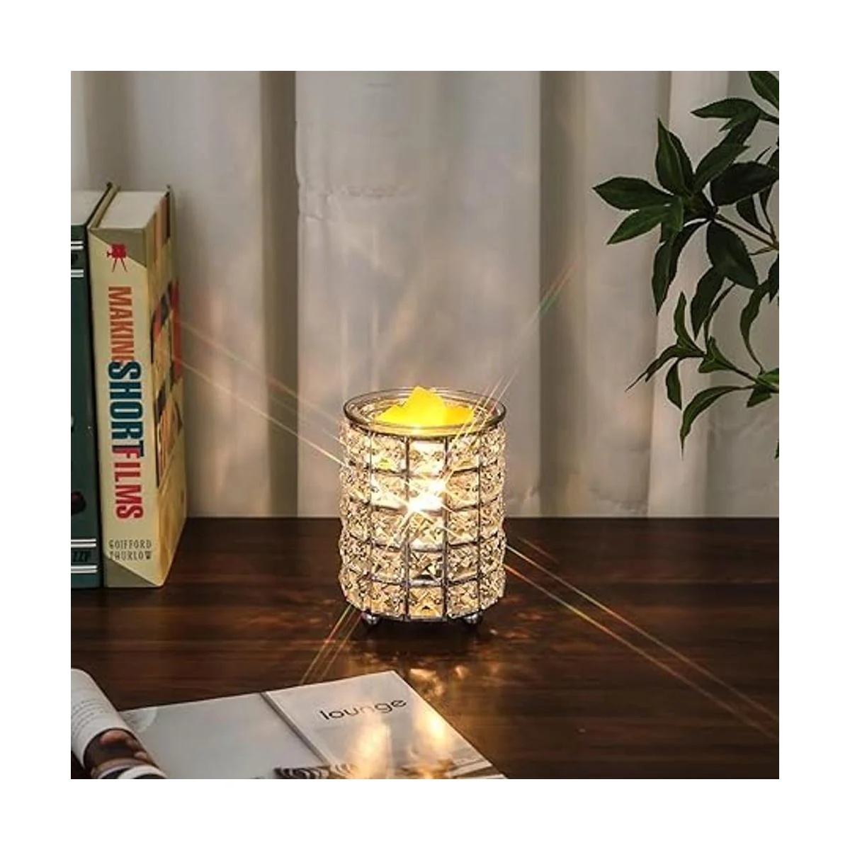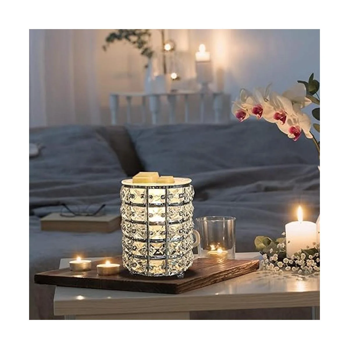 Calentador de cera de cristal de hierro forjado para derretir cera eléctrica para el hogar, cocina, sala de estar, dormitorio, spa plata