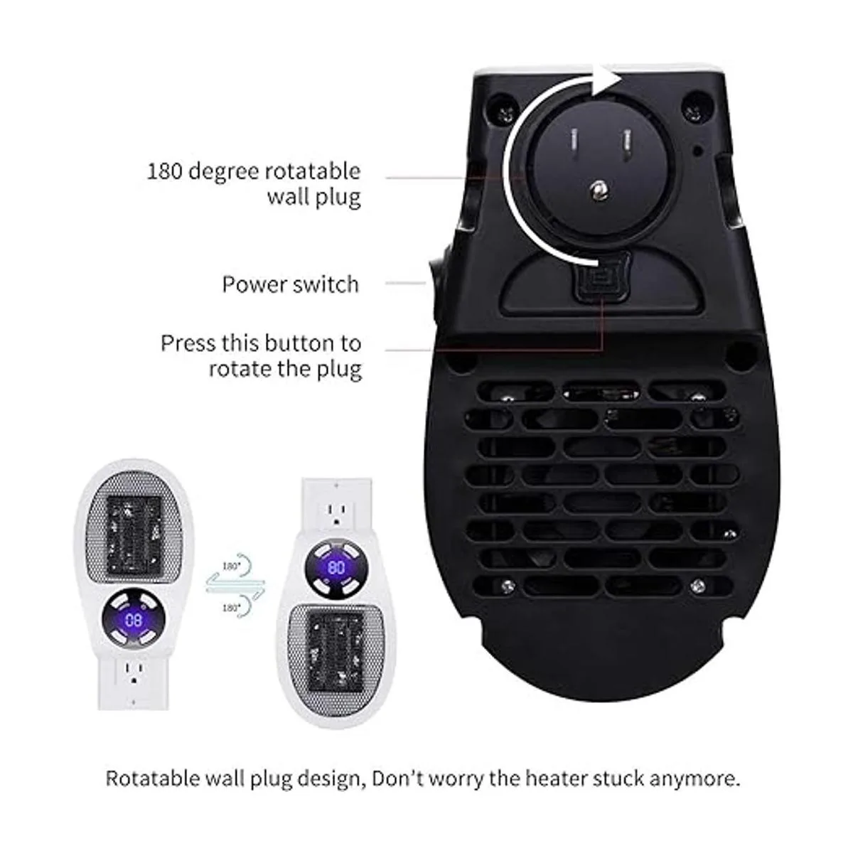 Enchufe giratorio de 180: el enchufe del calentador de espacio es capaz de girar 180 para acomodar tomas de corriente en diferentes condiciones y posiciones. Si tu toma de corriente está boca abajo, simplemente gira el enchufe para adaptarse a la toma de corriente