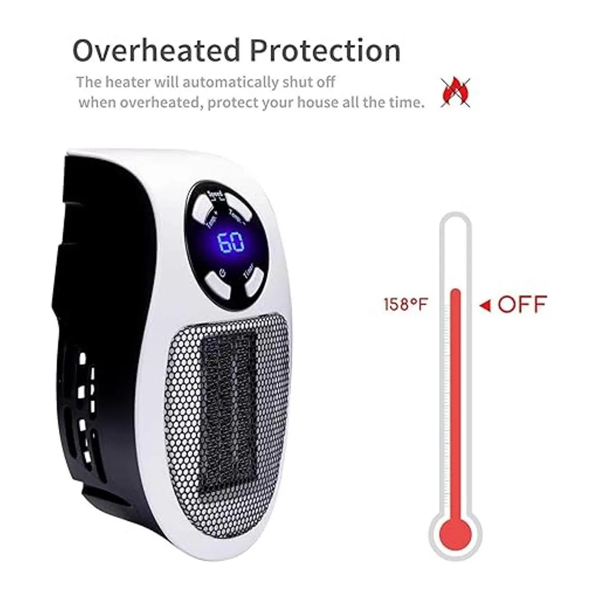 Calentador de espacio programable con pantalla LED, salida de pared, calentador eléctrico con termostato ajustable y temporizador para uso en casa, oficina, interior, 350 W, listado ETL