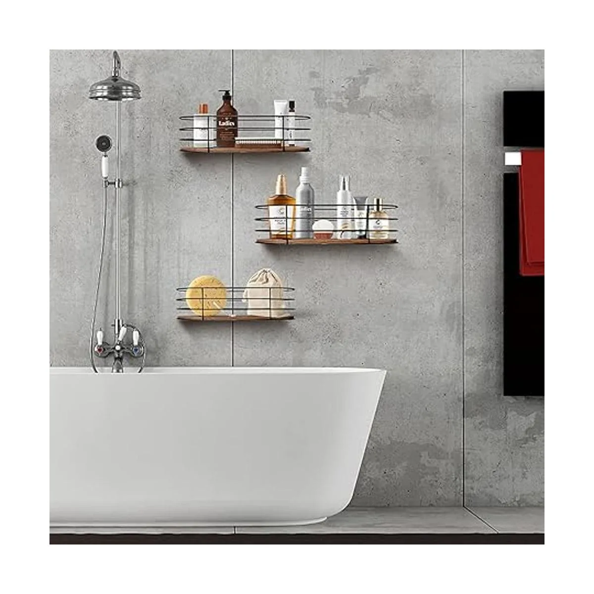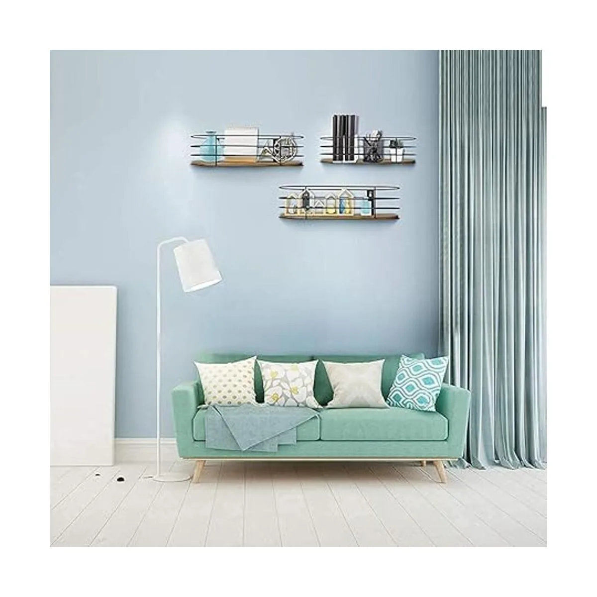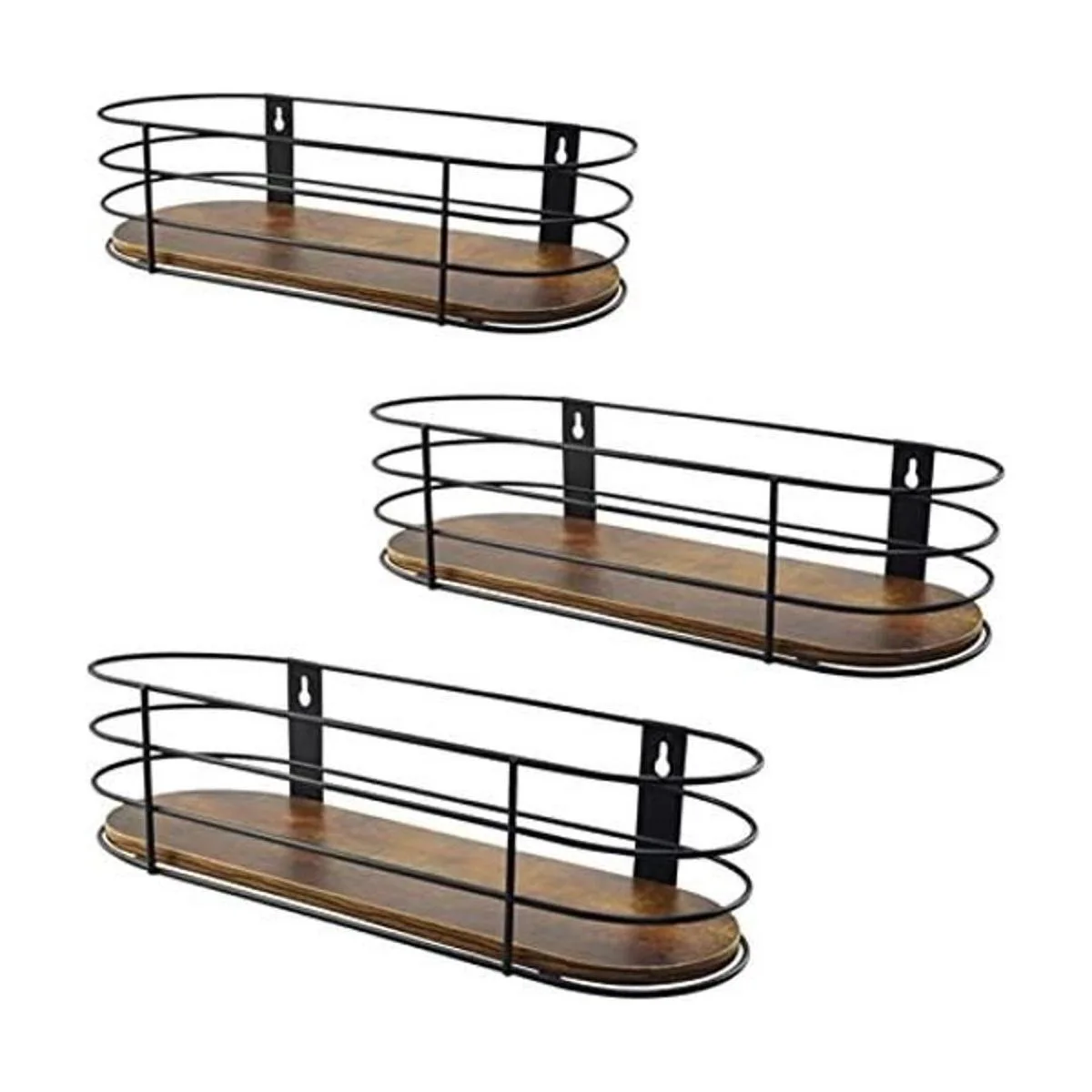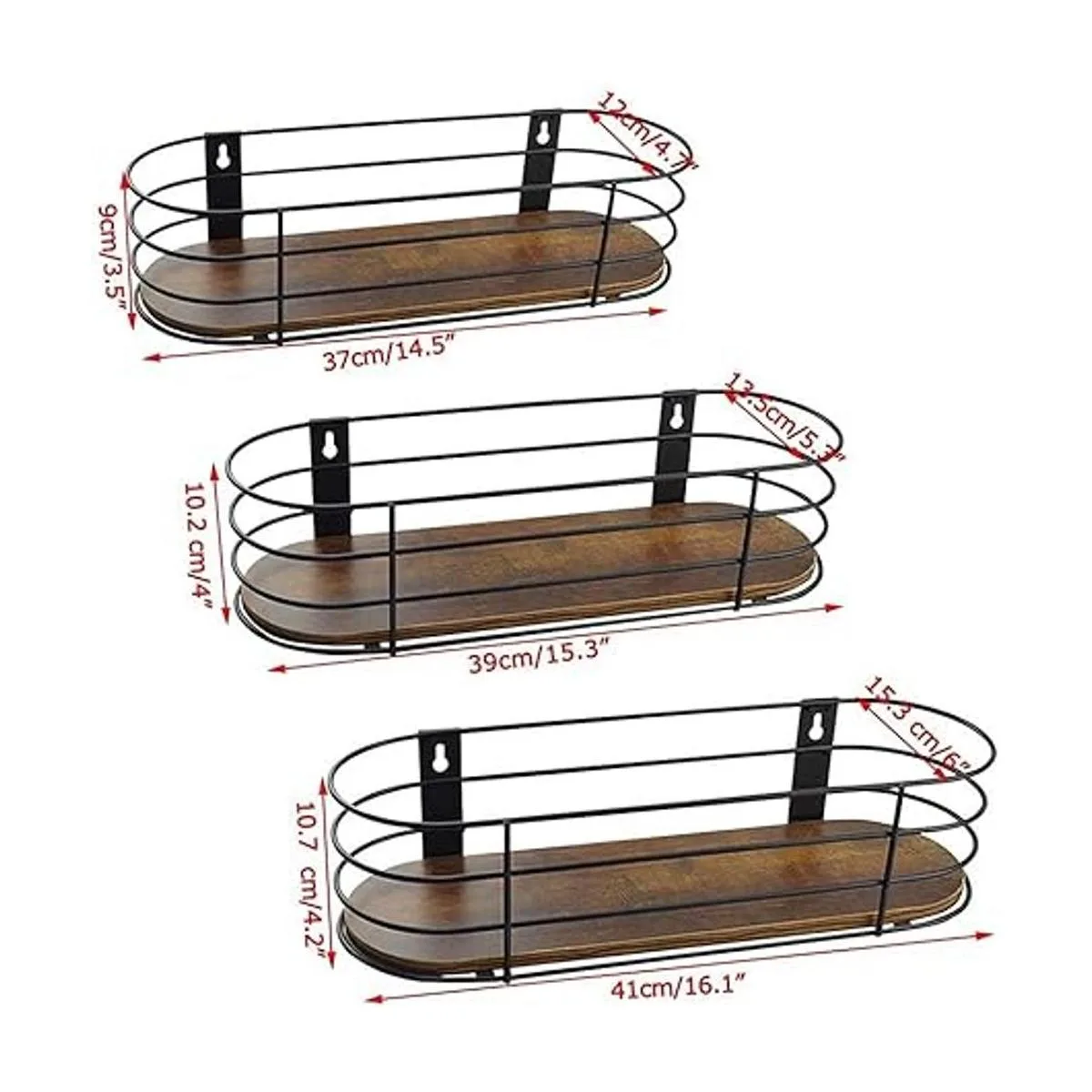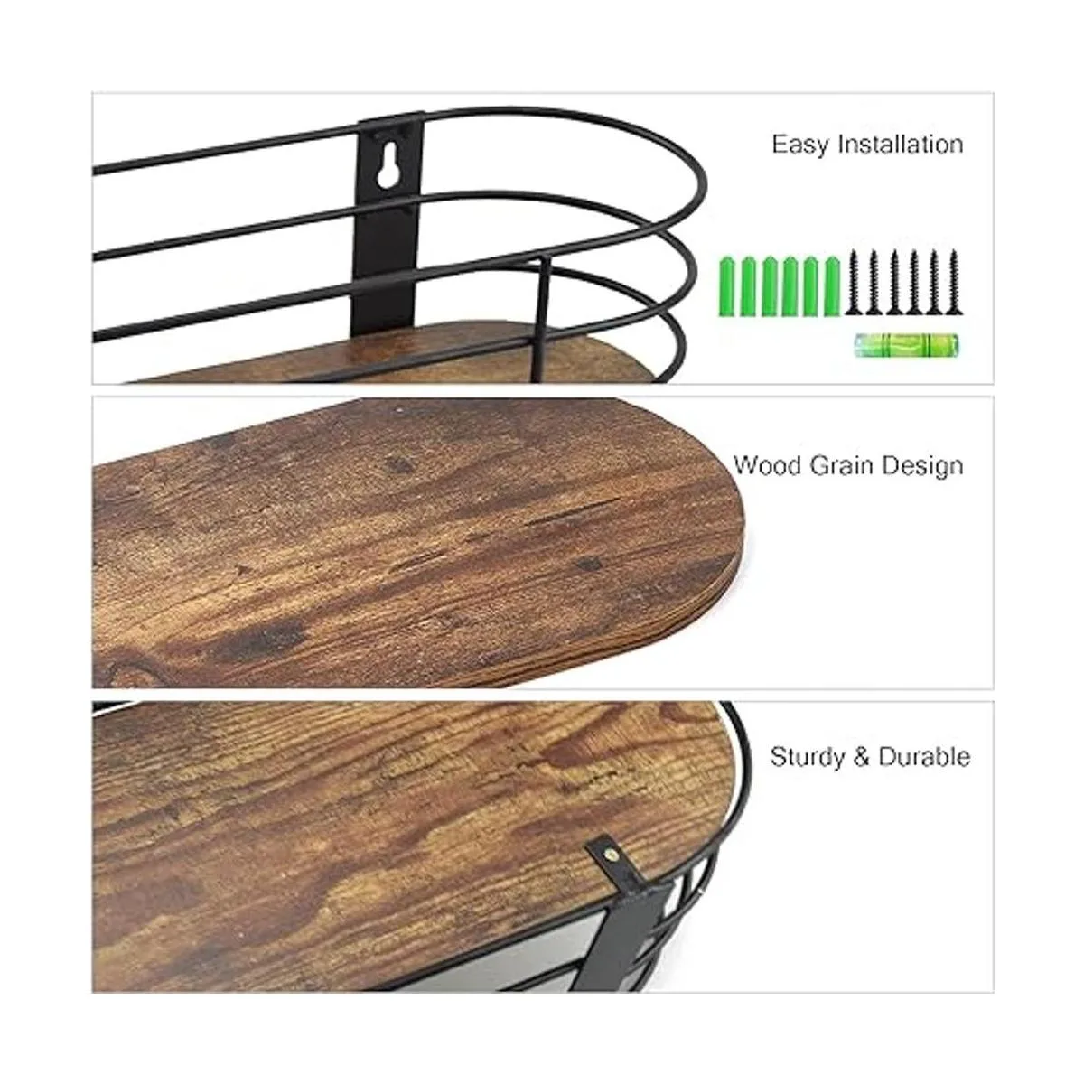 Calenzana Juego de 3 estantes flotantes ovalados de pared, marco de alambre de madera rústica, estante colgante para baño, dormitorio, cocina, sala de estar