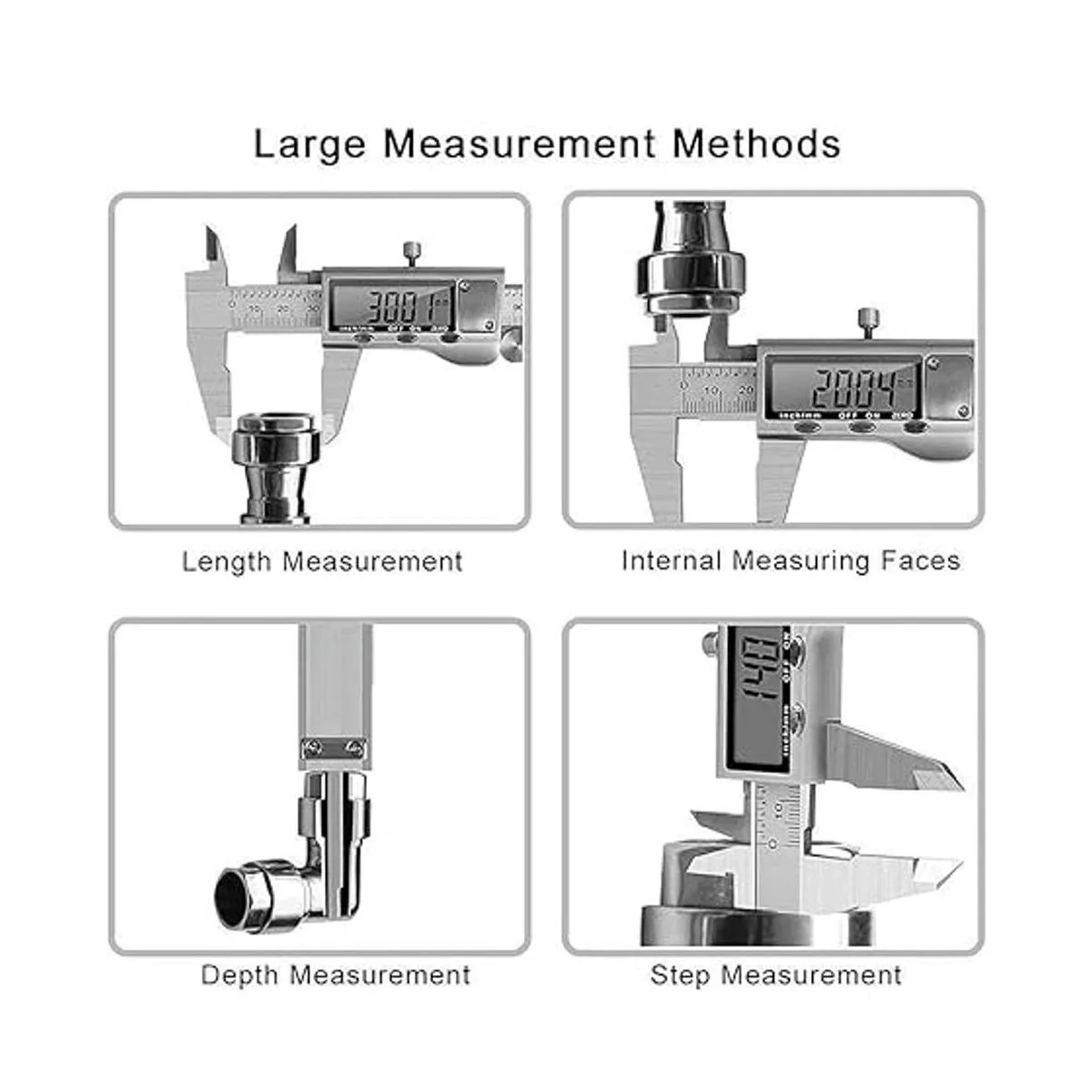 4 tipos de medidas, con protector de pantalla: nuestros calibradores digitales tienen 4 tipos de medidas para medir el diámetro exterior, el diámetro interior, la profundidad y la longitud del paso de un objeto. Se puede utilizar cualquier escenario de medición, por lo que cuando necesites medir, siempre es una buena idea llevarlo. Nuestros calibradores digitales también vienen con una película para evitar arañazos.