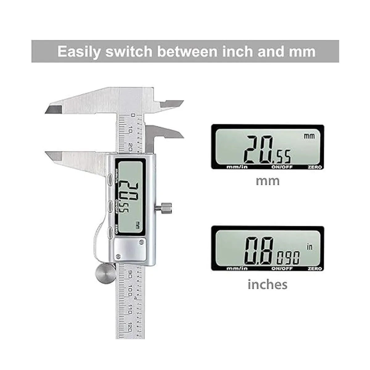 Pantalla LCD grande y función de conversión de unidad: nuestros calibradores de pantalla digital tienen una gran pantalla LCD, por lo que puedes leer fácilmente los números al medir objetos que están lejos de tus ojos. Nuestros calibradores de pantalla digital miden los resultados sin convertir unidades, tiene botón de función de conversión de pulgadas y milímetros, solo tienes que pulsar el botón, los calibradores se convertirán automáticamente.