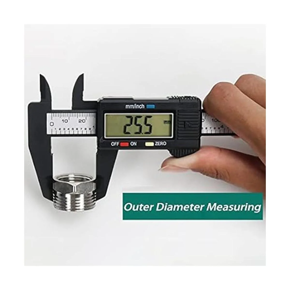 4 métodos de medición y seguridad: los calibradores digitales se pueden utilizar para medición externa, medición interna, medición de profundidad y medición de pasos. Y los pines de los calibradores de plástico están hechos de plástico, por lo que no hay cortocircuito al medir la batería o en contacto con electrodos positivos y negativos. La seguridad es más alta que los calibradores de metal.