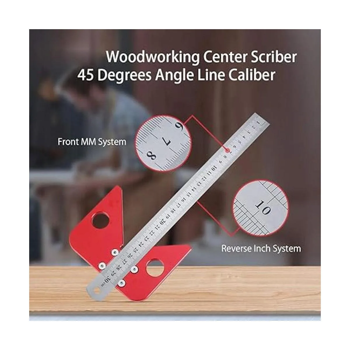 Calibre de línea de buscador central, cuadrado central, regla de carpintería, regla de marcado de calibre de 45 grados, herramienta de medición de madera