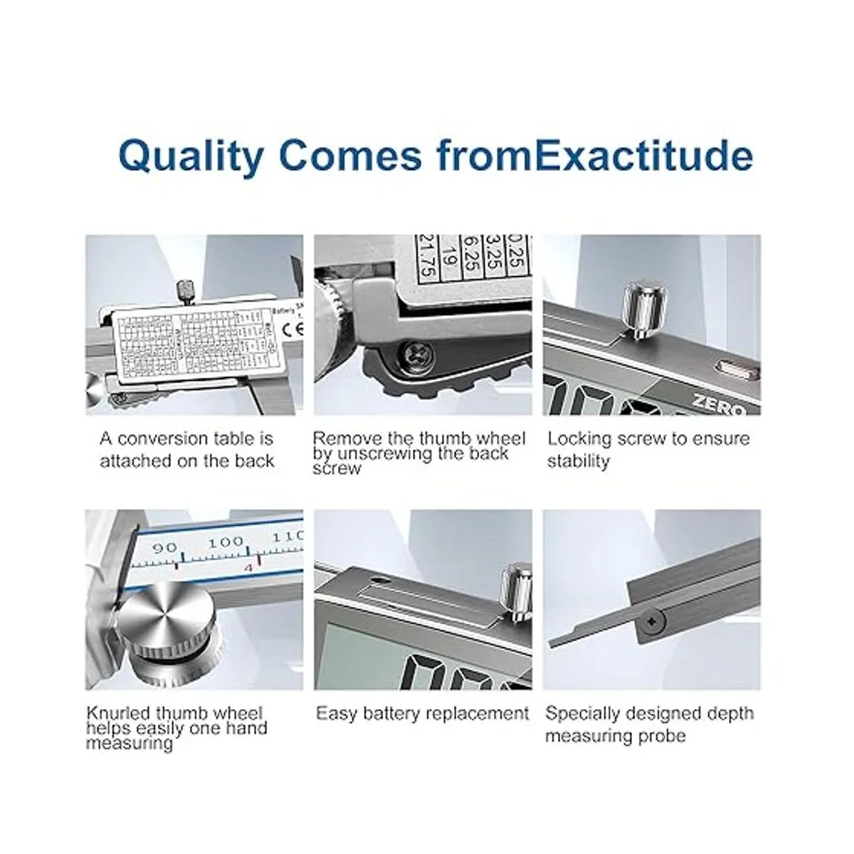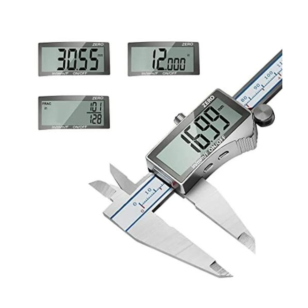 Fracción/Pulgada/Milímetro: Fracción de un botón/Pulgada/Milímetro cambia rápidamente. Cero calibración en cualquier punto, apagado automático, hecho de aleación de zinc sólido, duradero y portátil.