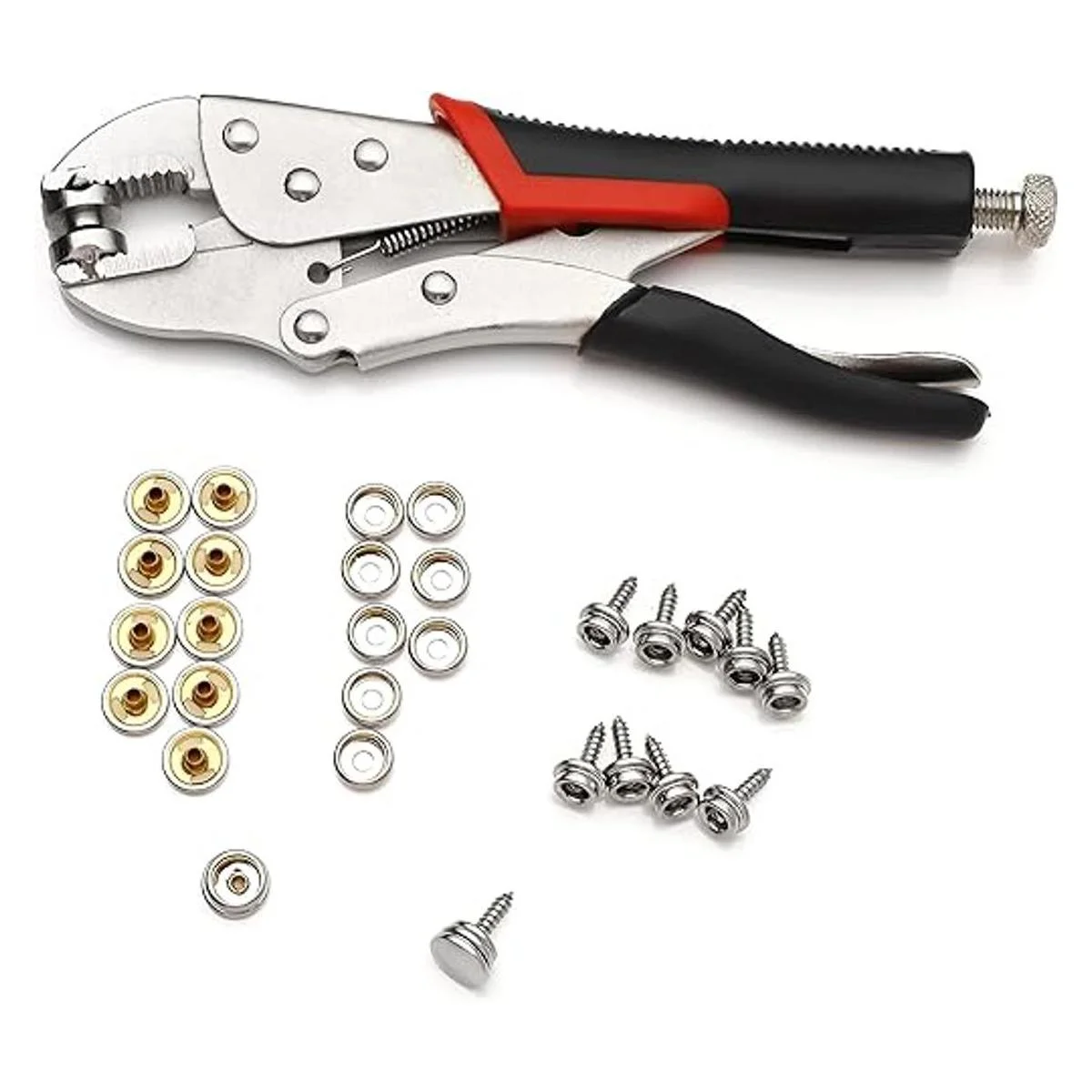 Alicadoras a presión de grado marino: utiliza el juego como kit de cierre a presión para cubierta de barco, toldo de lona, lona, toldo o costura de revestimientos resistentes al aire libre. Herramientas construidas resistentes para reparar y sujetar anillos de presión de grado marino