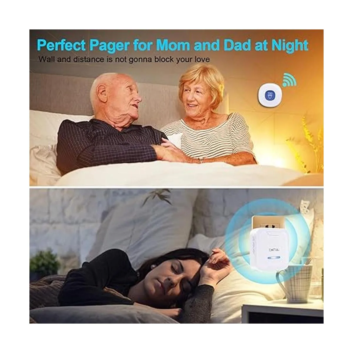 3 receptores enchufables y 2 botones de llamada, la idea es tanto para cuidadores como para pacientes, ancianos, residentes, discapacitados, enfermedades mientras todavía pide ayuda en casa. No es necesario gritar para llamar la atención de alguien