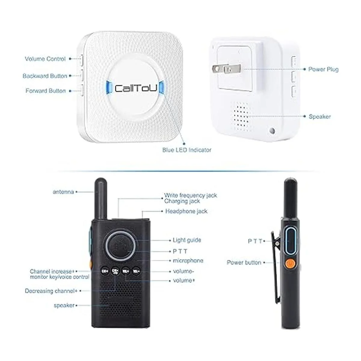 CallToU Sistema de intercomunicación para el hogar con botón de alerta inalámbrico, radio de 2 vías de largo alcance para ancianos, pacientes, embarazadas, hogar, oficina
