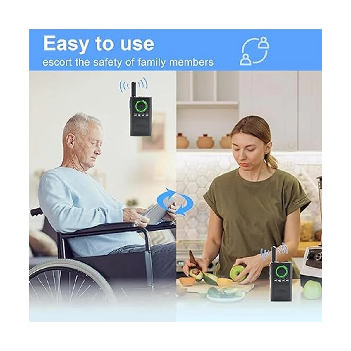 Protector inalámbrico: 2 receptores, 2 botones de llamada y 2 walkie talkies. Permite que los cuidadores y residentes estén libres mientras garantiza que la ayuda todavía esté disponible con solo tocar un botón, ideal para ancianos, personas mayores, pacientes, discapacitados