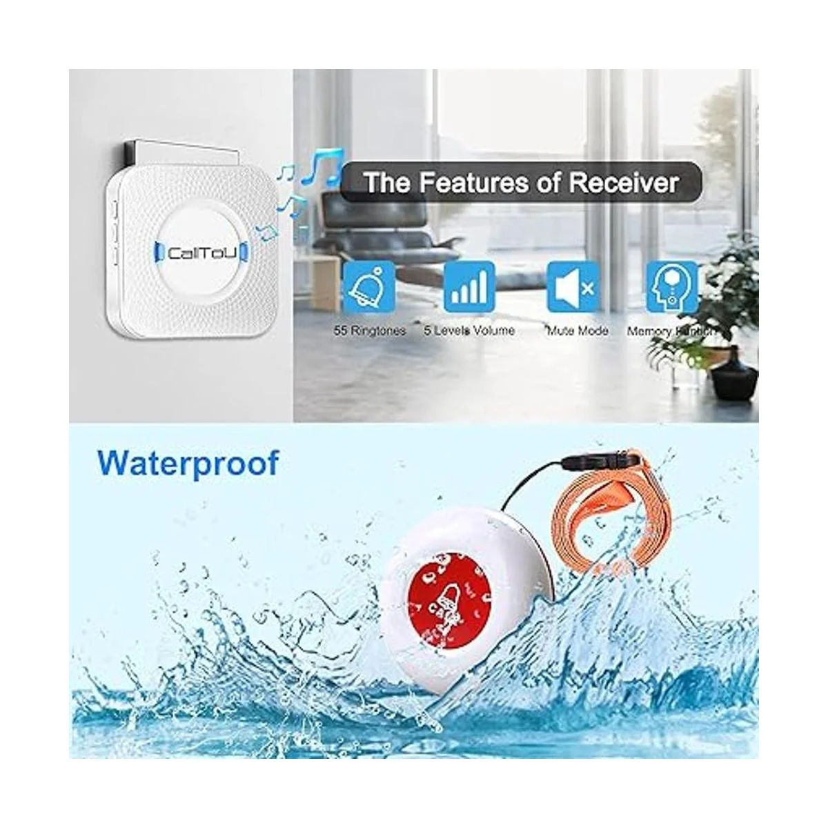 Alta calidad: tanto el botón de llamada como el receptor son impermeables y resistentes al polvo. Ya sea que lo instales en el baño o lo lleves fuera en un día lluvioso, no tienes que preocuparte de que este buscador de cuidadores se moje