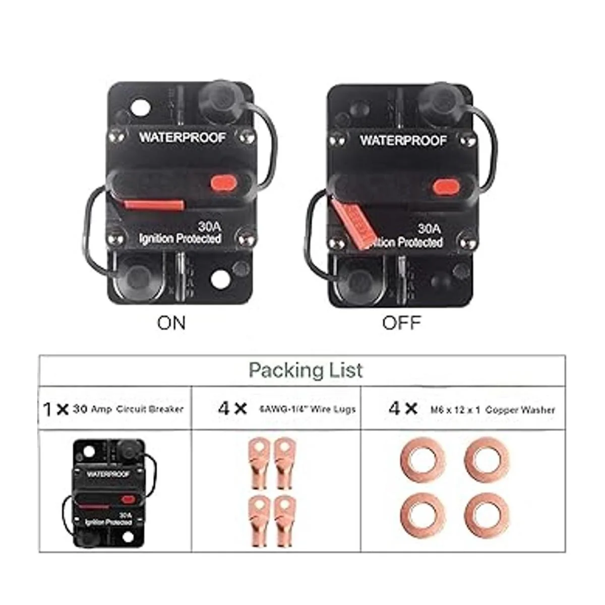 Calvert win 30 Amp Disyuntor con reinicio manual para coche Marine Trolling Motors Barco ATV Manual Power Protect para sistema de audio Fusible, 12V48VDC, Impermeable 30A