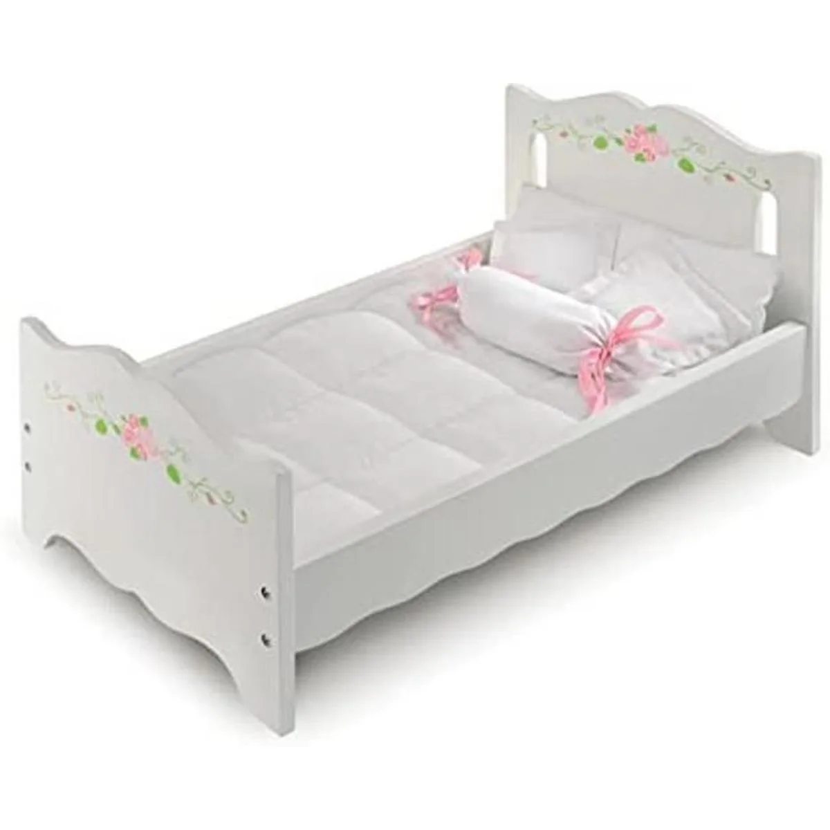 Incluye tela ropa de cama con un diseño de rosa blanco Fancy almohada conjunto especial . para muñecas de hasta 20 inch .