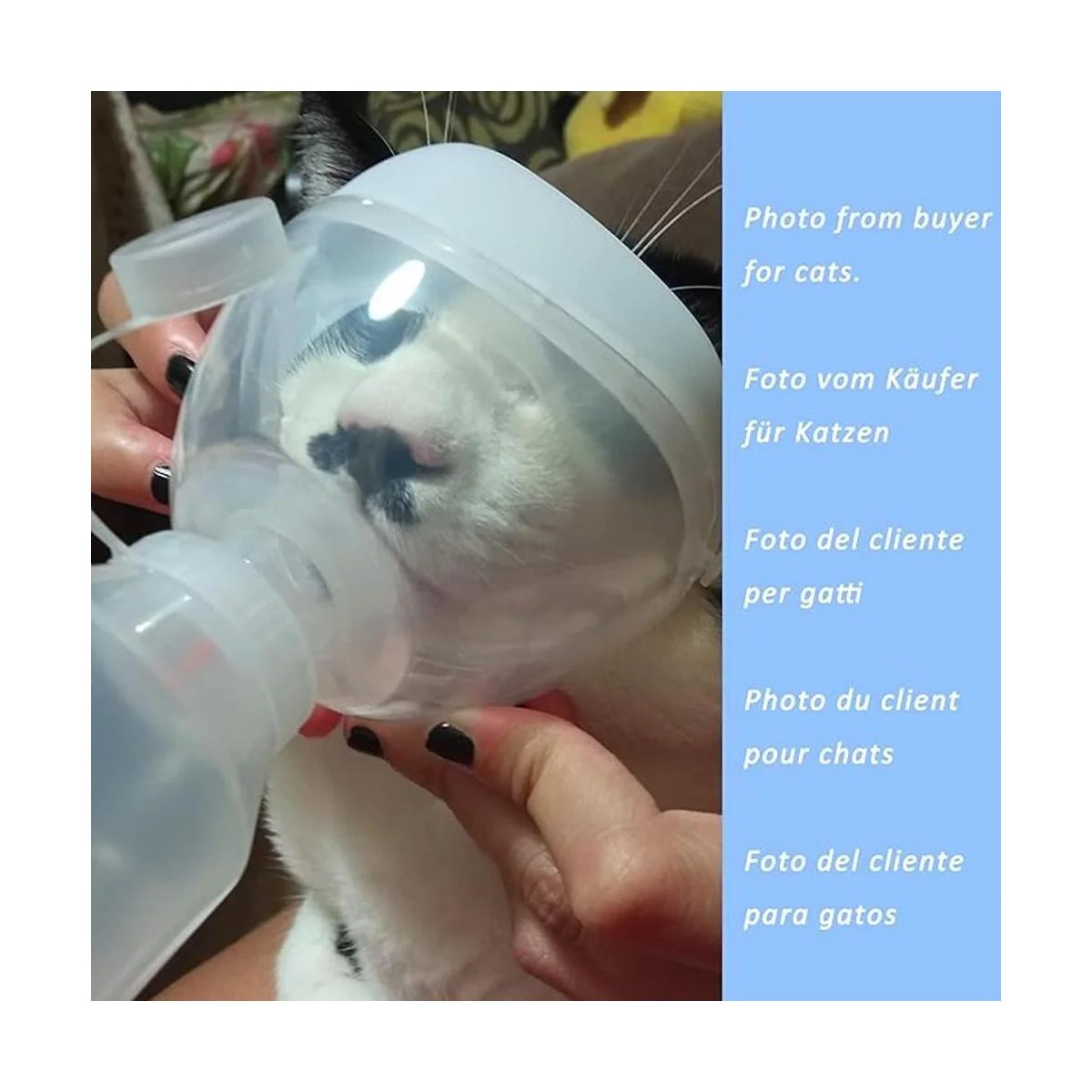 Pieza trasera única, fácil de inhalar: la estructura única de la pieza trasera puede producir un efecto turboalimentado, lo que permite que el gato inhale suavemente, pero generando una succión grande y concentrada, y aspirando la niebla en la cavidad nasal.