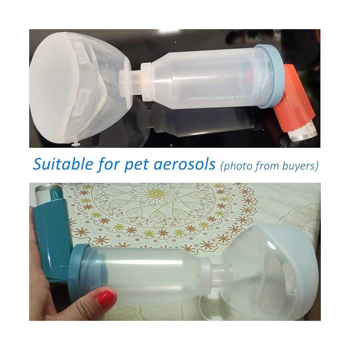 Válvula de baja resistencia: la válvula de respiración se ha mejorado para permitir que el gato inhale suavemente para abrir la válvula e inhalar medicamentos. Pero la válvula permanece cerrada durante la exhalación para proteger la niebla de ser soplada fuera de la cámara.