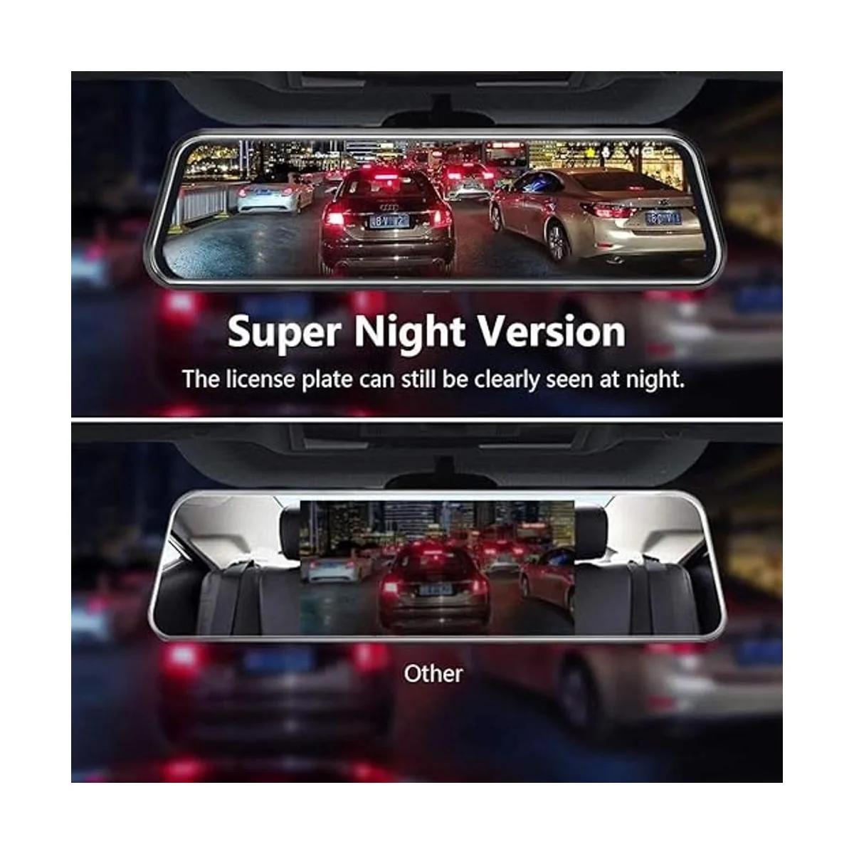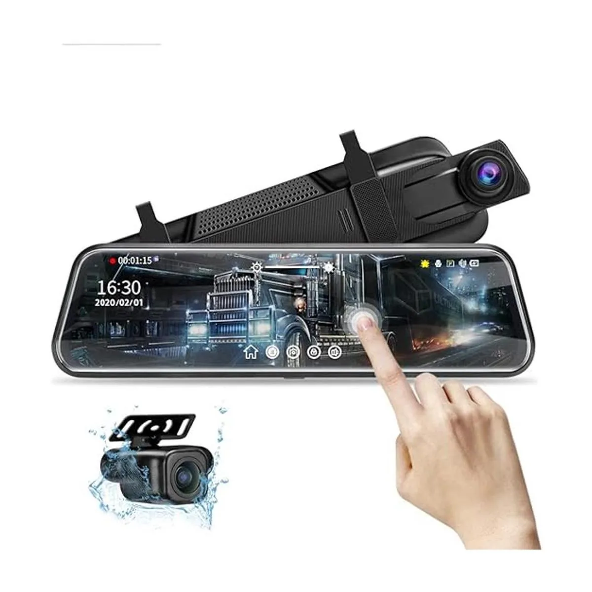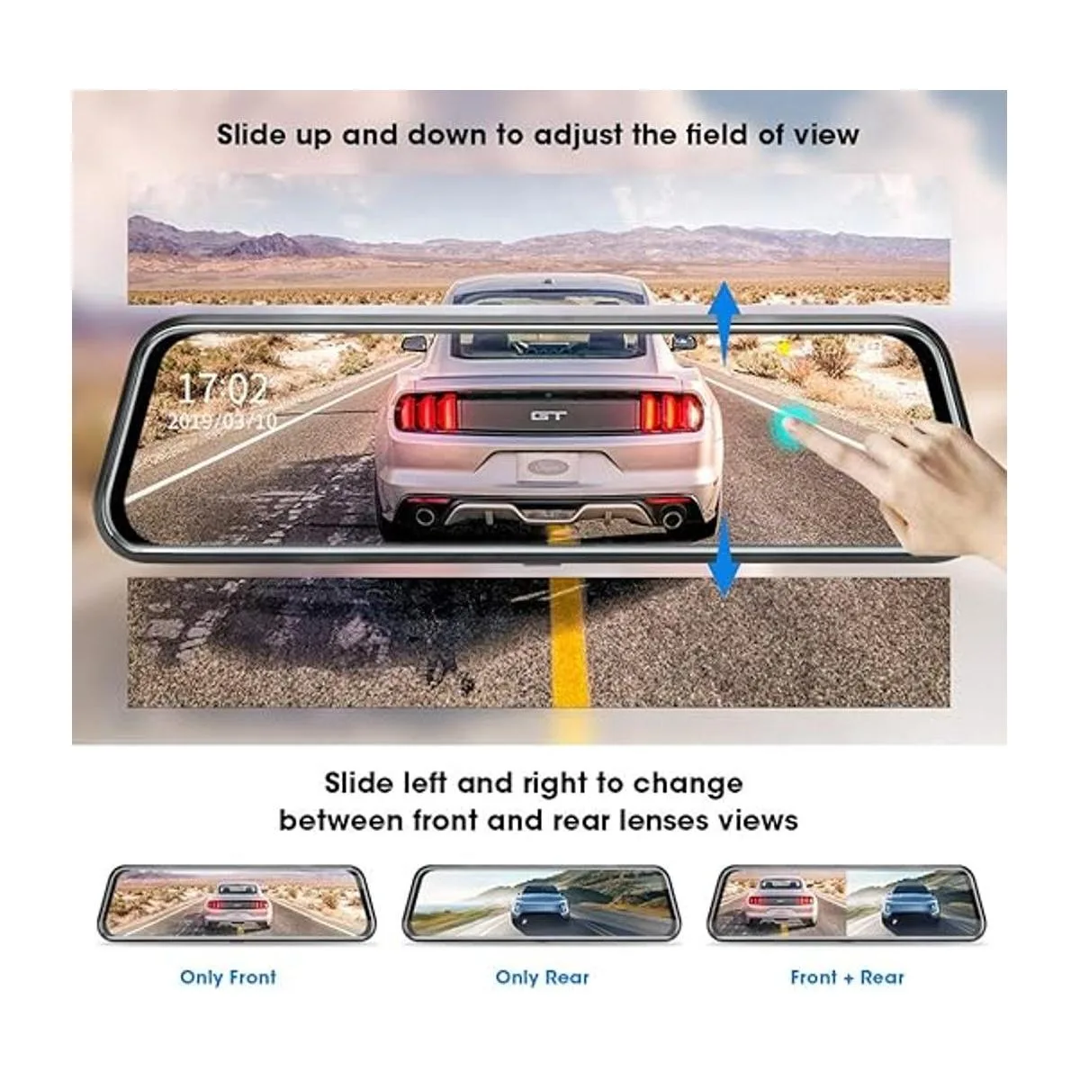 Pantalla táctil completa IPS de 10 pulgadas: la pantalla de 10 pulgadas proporciona una visión 3 veces más amplia que la vista trasera tradicional y puede capturar más visión de carretera. Pantalla táctil completa de medios de transmisión, más fácil de operar, velocidad de respuesta rápida. Ejecuta la cámara del salpicadero con un simple toque varias operaciones: cambia las imágenes de la cámara delantera y trasera deslizando hacia la izquierda y la derecha, ajusta el ángulo de visión deslizando hacia arriba y hacia abajo, grabación de video/reproducción, ajuste de exposición, ajuste de brillo de la pantalla, fecha/hora, etc.