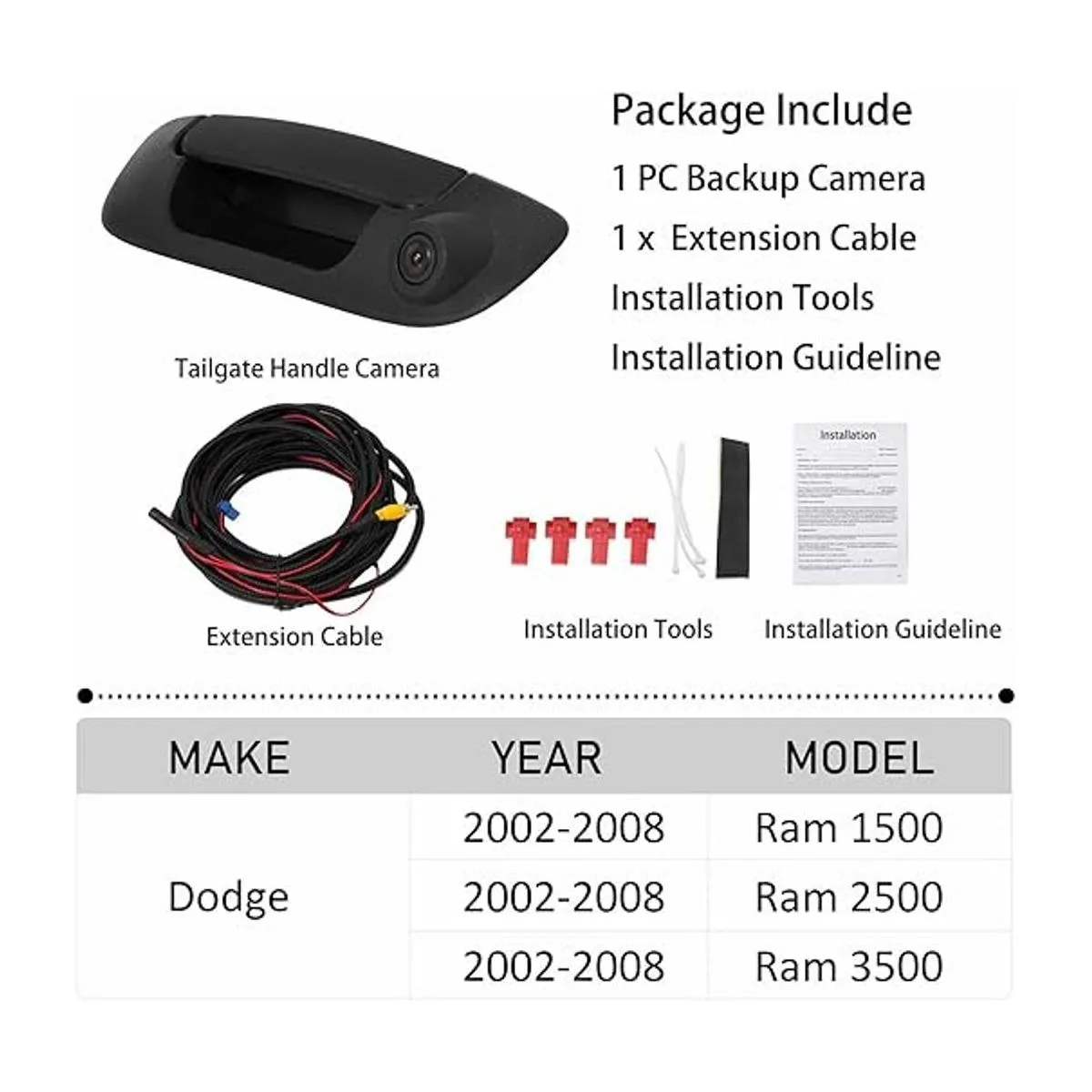 Cámara de marcha atrás con mango trasero compatible con Dodge Series: Dodge Ram 1500/2500/3500 20022008.