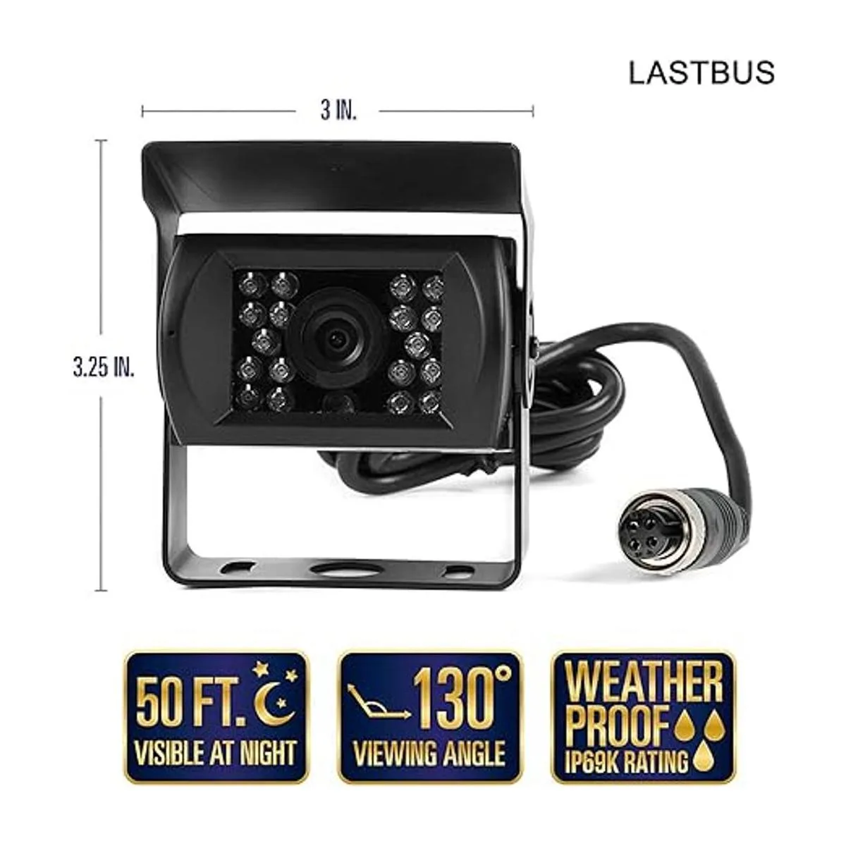 Alta calidad La carcasa de metal hace que esta cámara sea impermeable, a prueba de golpes y pueda funcionar durante más tiempo. Y la cámara de marcha atrás adopta una escena de cristal en lugar de una pantalla de plástico para garantizar imágenes más claras y una vida útil más larga. El impermeable IP69 puede garantizar que pueda funcionar bien en todas las condiciones meteorológicas. en todas las condiciones meteorológicas.