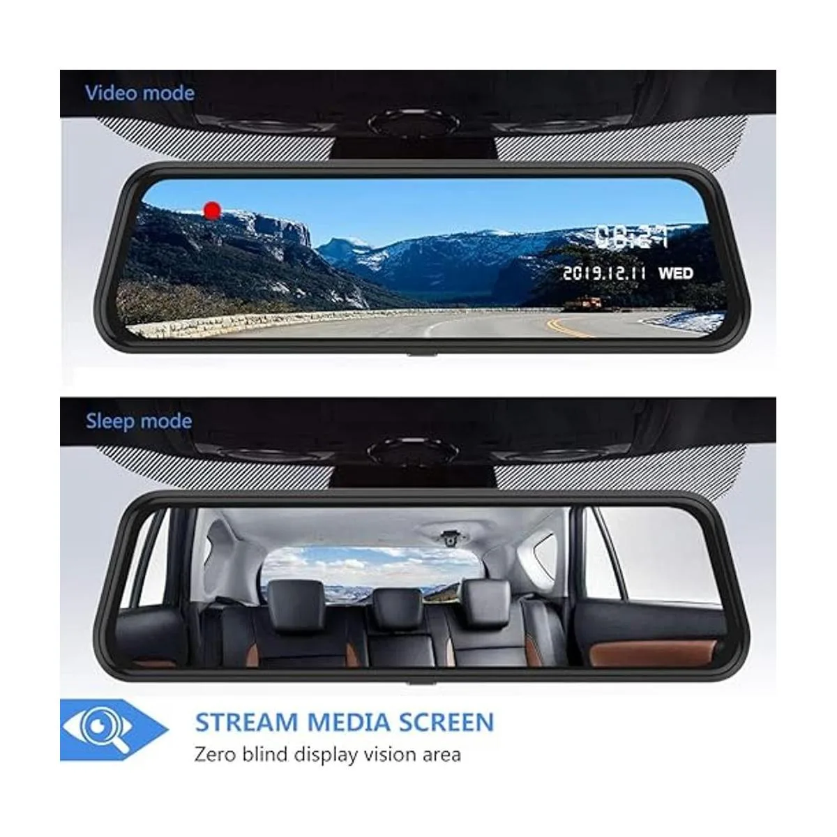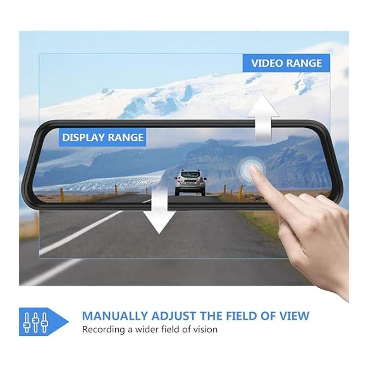 Pantalla táctil grande de 10 pulgadas: el espejo retrovisor de medios de transmisión de 10 pulgadas cuenta con una pantalla táctil IPS Full HD que te permite ver más información de tráfico. Con una lente ultra ancha de 170 para cubrir toda la carretera por delante y capturar todos los detalles críticos como matrículas y carteles, etc. Todas las operaciones se pueden navegar fácilmente deslizando los dedos con la pantalla táctil y funciona como un espejo retrovisor normal después de que el protector de pantalla esté encendido.