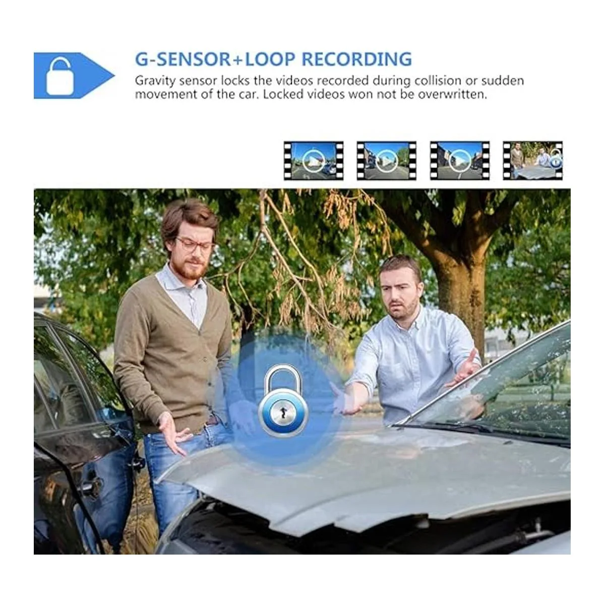 Grabación en bucle y sensor G: el sensor G integrado bloqueará automáticamente el video grabado para guardarlo al detectar colisiones, lo que hace que el video no se pueda sobrescribir incluso la función de grabación en bucle está encendida. Cuando el espacio de almacenamiento está lleno, puede cubrir automáticamente el segmento anterior. Con la grabación en bucle habilitada, nunca tendrás que preocuparte por que la capacidad de nuestra tarjeta SD esté llena no incluye tarjeta SD.