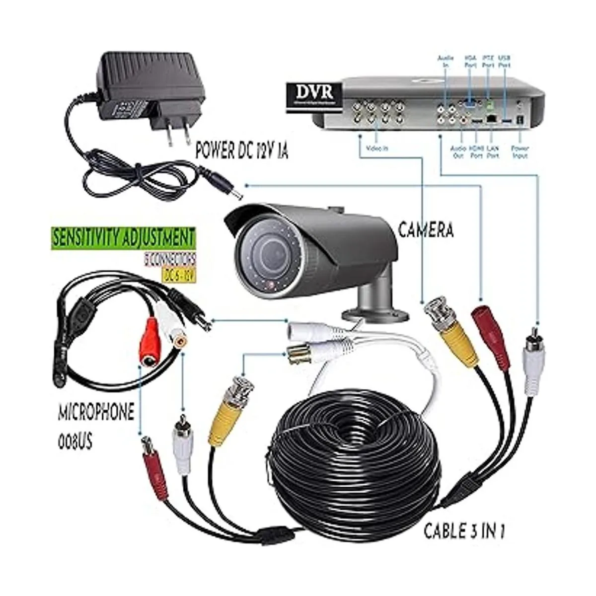 Cámara de seguridad de audio HD de 100 pies BNC cable de alimentación Regalo BNC Cable de extensión todo en uno prefabricado con conectores BNC RCA de 98.4 ft 3 en 1 100 pies