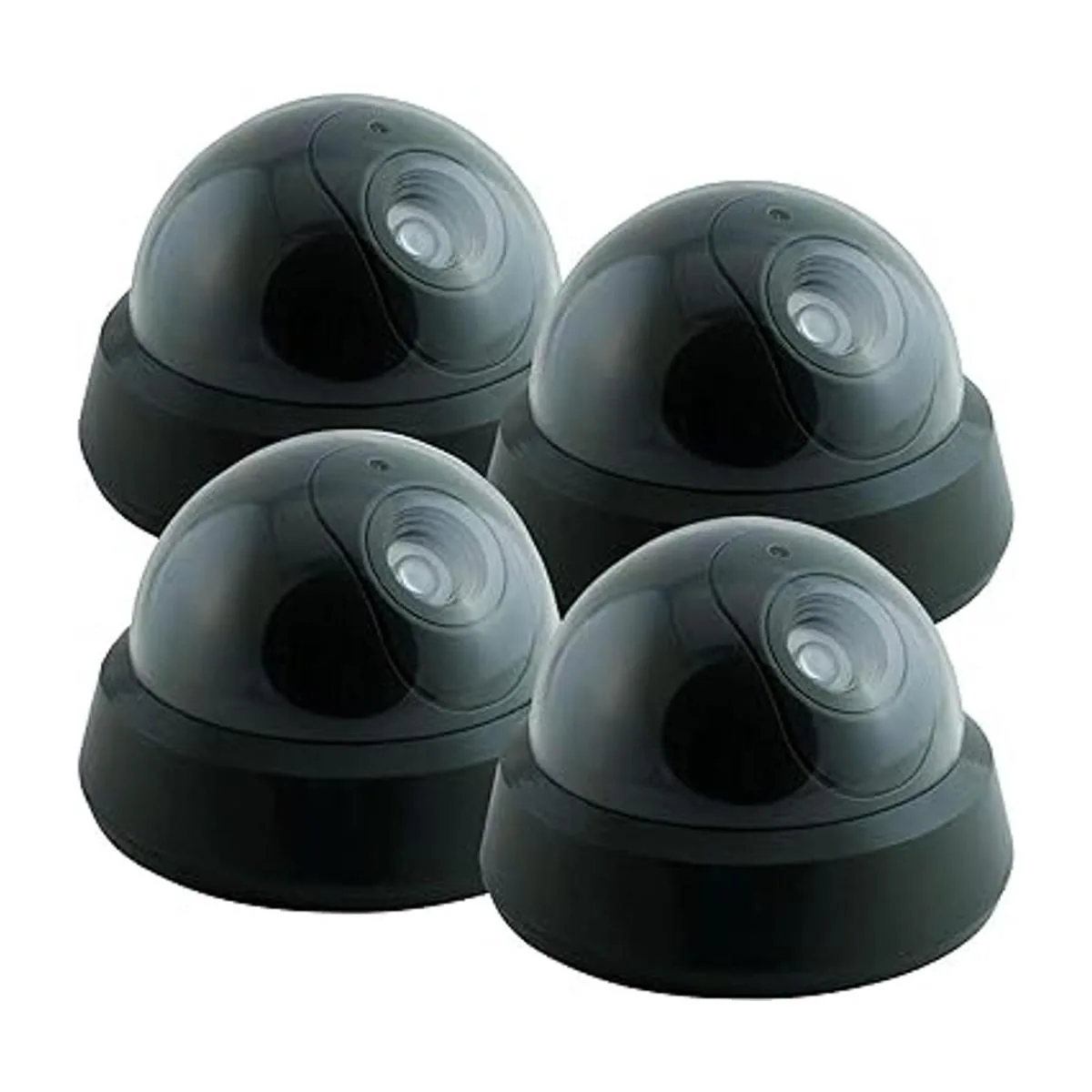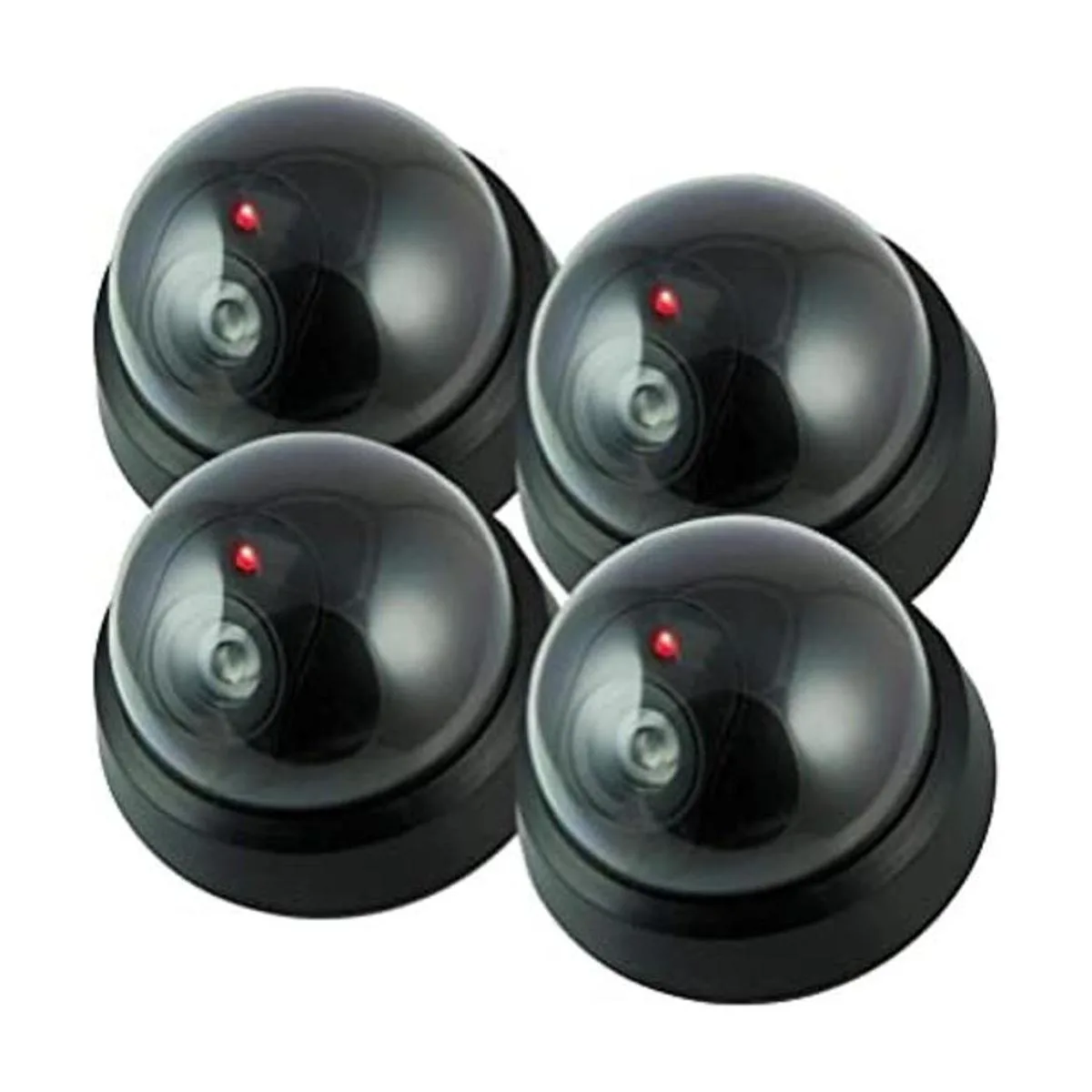 Cámara de seguridad falsa para exteriores, sistema de vigilancia inalámbrica, luz de movimiento, aspecto realista con luz LED roja intermitente, paquete de 4 unidades