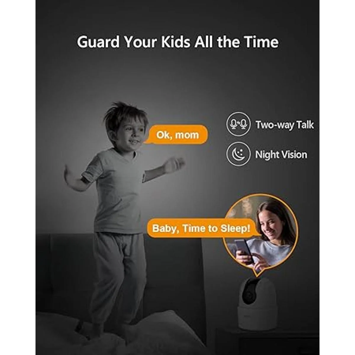 Audio de 2 vías y detección de sonido: Interactúa con tus mascotas y familia con el altavoz y el micrófono integrados. Te enviará una notificación instantánea cuando el monitor del bebé detecte que el bebé llora, los ladridos de perro u otros sonidos anormales, manteniéndote al tanto de lo que está pasando en casa.