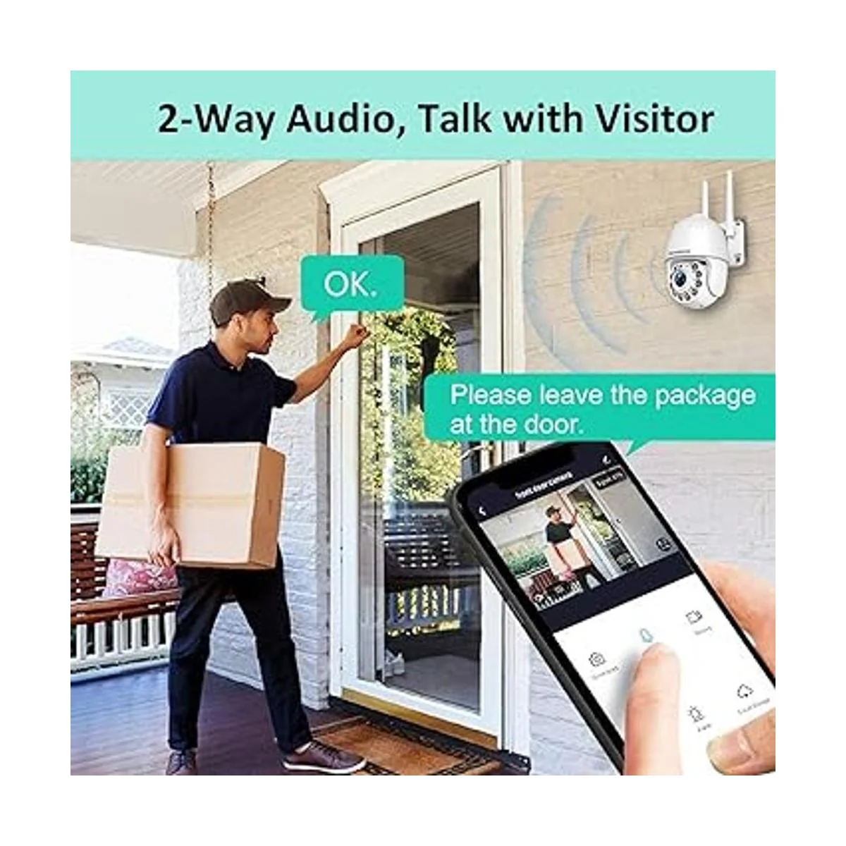 Una vez que esta cámara WiFi para exteriores detecta movimientos, empujará mensajes de alerta a la aplicación del teléfono en poco tiempo, siempre puedes comprobar lo que está sucediendo, el audio de 2 vías integrado te permite hablar con los visitantes. Esta cámara IP inalámbrica también grabará todos los eventos en la tarjeta SD inserta una tarjeta primero, puedes reproducir fácilmente grabaciones desde la aplicación del teléfono para comprobar lo que sucedió y descargar los videos a tu teléfono como prueba.