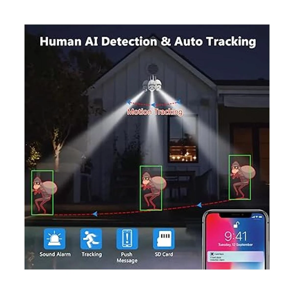 Cámara de seguridad para exteriores, cámara IP WiFi Hosafe, sistema de seguridad para el hogar, detección de movimiento AI, seguimiento automático de inclinación panorámica, audio bidireccional, visión nocturna a color, cámara de videovigilancia impermeable