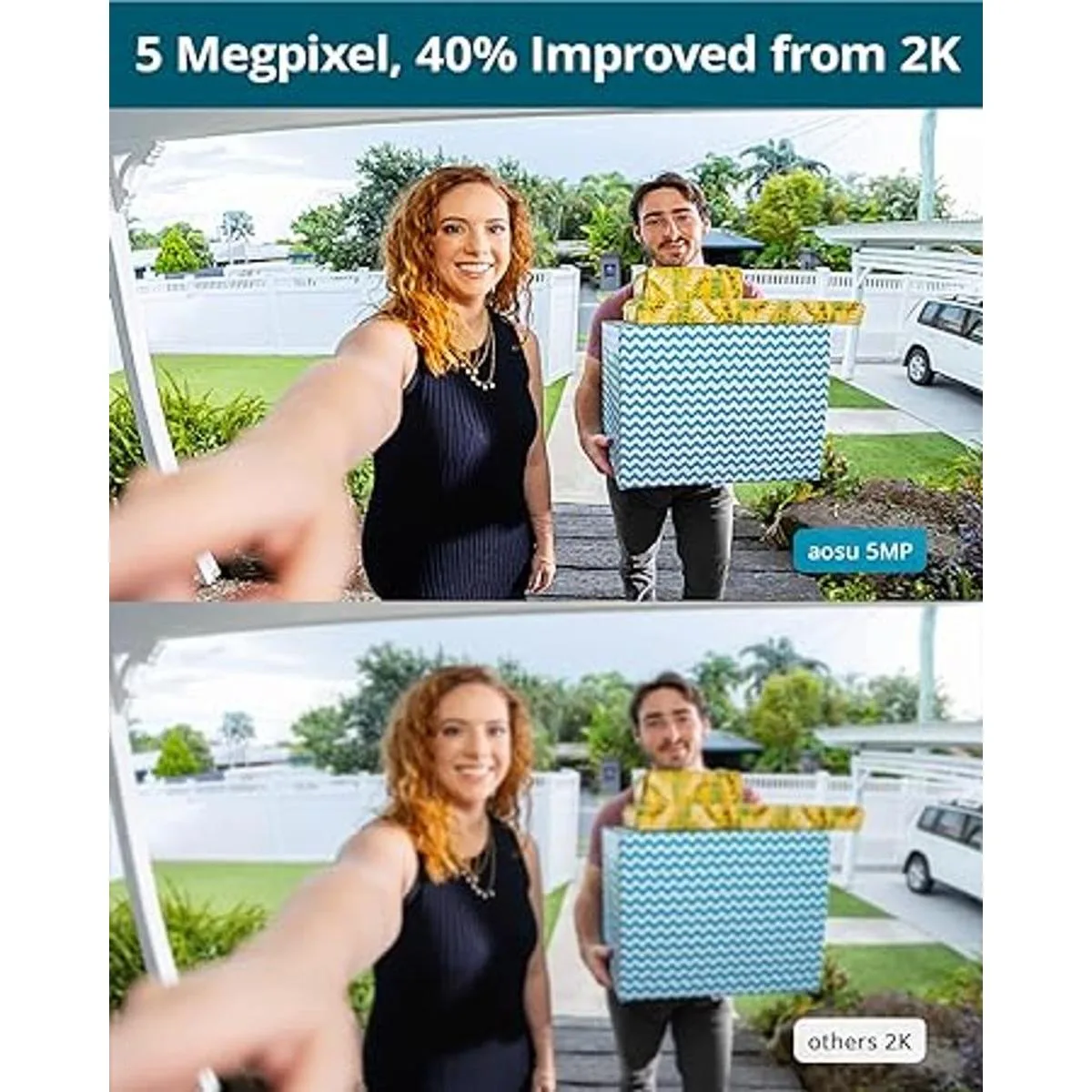 Cámara de timbre inalámbrica, aosu 5MP Ultra HD, sin tarifa mensual, triple detección de movimiento con base en casa, WiFi mejorado 2.45 GHz, batería de 180 días, funciona con Alexa y Google Assistant