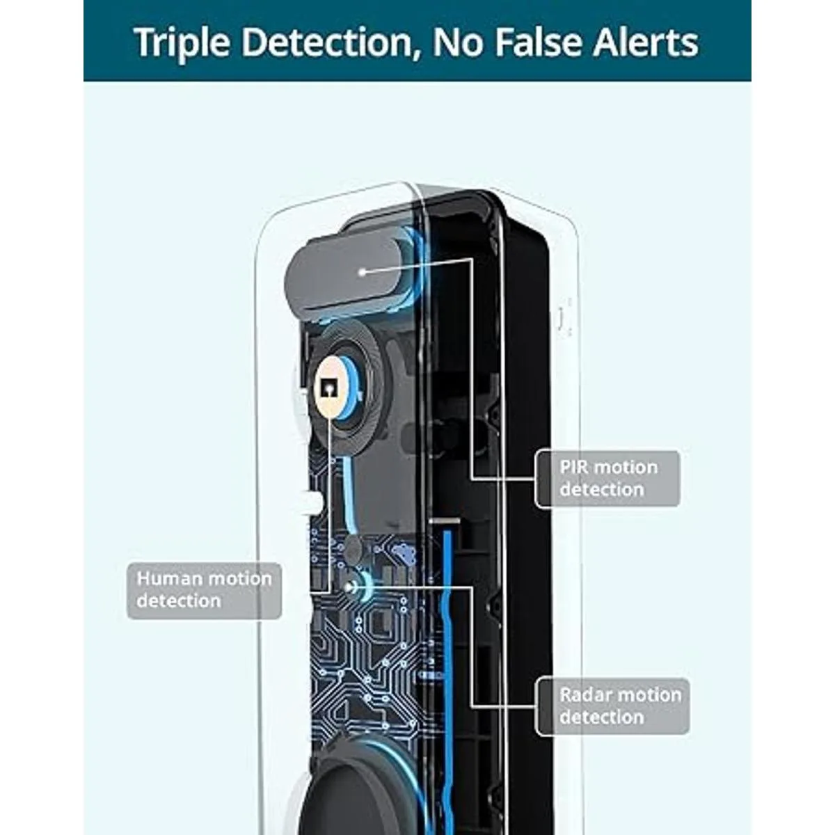 Triple detección de movimiento, sin alertas falsas: los sensores de movimiento de radar y PIR avanzados y la detección humana inteligente pueden distinguir entre la pista de objetos cercanos y lejanos, y juzgar si son personas o animales.