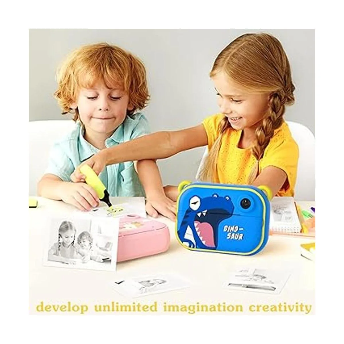 Buen amigo para niños: la cámara apta para niños resuelve el mal hábito de que los niños confían en teléfonos móviles, simplemente pulsa el botón de la cámara, puedes tomar fotos e imprimir fotos en blanco y negro, fácil para los niños usar su imaginación para hacer graffiti creativo, cultivar su interés en la pintura y la fotografía.