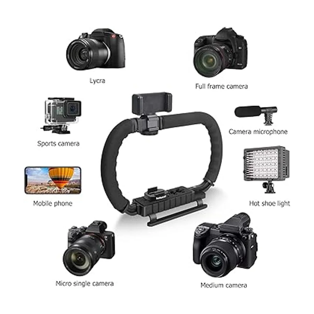Cámara réflex digital de 3 zapatossin espejocámara de acción, estabilizador de teléfono, soporte de expansión, soporte para cineasta de películas, YouTube Tiktok, kit de video compatible con GoPro, Canon, Nikon, Sony, iPhone Android